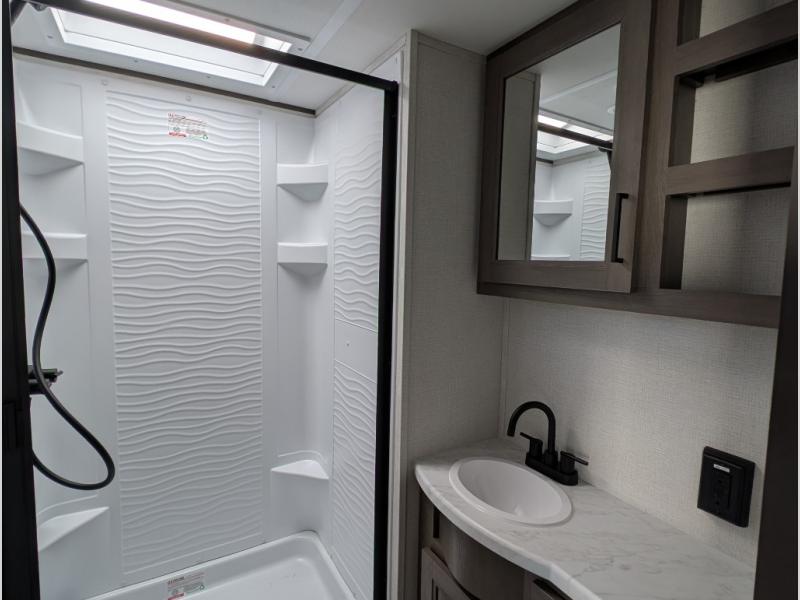 With any Transcend travel trailer by Grand Design, you will enjoy upscale appointments and convenient amenities to make each camping experience one to remember! The Quad Seal technology, residential insulated walls, plus heated and enclosed underbelly with suspended tanks make these units solid and durable. There is a black automotive glass door outside, along with a Safe-T-Rail assist on the main entry door, backup camera prep, and a universal docking station. JBL interior and exterior speakers plus a JBL head unit will let you listen to your favorite tunes as you visit under the power awning with LED strip lights. Inside, you'll enjoy multiple outlets to keep your gadgets charged, thermoformed and seamless countertops, and a 6' 6" interior height so you won't feel closed in. The Solar Prep Package will allow you to enjoy off-grid capabilities with a 200W solar panel, which is wired for up to 600W, a 30 AMP Bluetooth solar controller, a 2000W inverter prep, and more!
