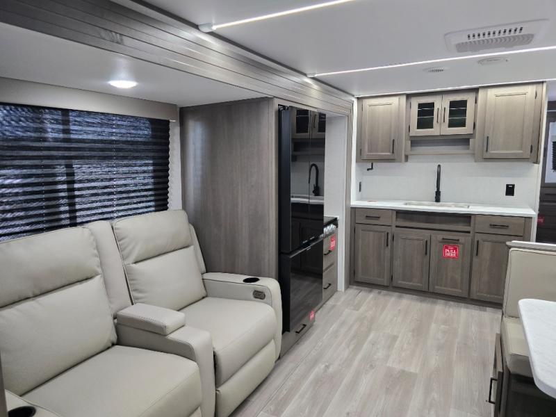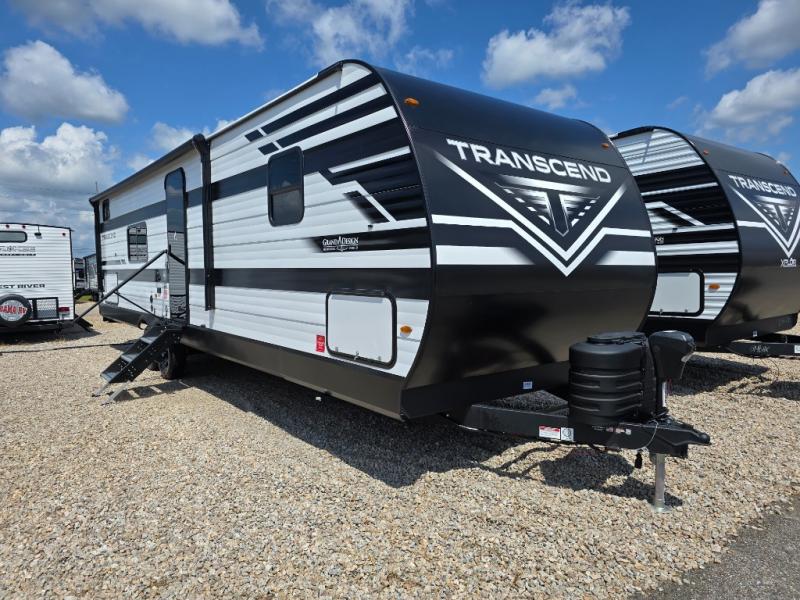 With any Transcend travel trailer by Grand Design, you will enjoy upscale appointments and convenient amenities to make each camping experience one to remember! The Quad Seal technology, residential insulated walls, plus heated and enclosed underbelly with suspended tanks make these units solid and durable. There is a black automotive glass door outside, along with a Safe-T-Rail assist on the main entry door, backup camera prep, and a universal docking station. JBL interior and exterior speakers plus a JBL head unit will let you listen to your favorite tunes as you visit under the power awning with LED strip lights. Inside, you'll enjoy multiple outlets to keep your gadgets charged, thermoformed and seamless countertops, and a 6' 6" interior height so you won't feel closed in. The Solar Prep Package will allow you to enjoy off-grid capabilities with a 200W solar panel, which is wired for up to 600W, a 30 AMP Bluetooth solar controller, a 2000W inverter prep, and more!