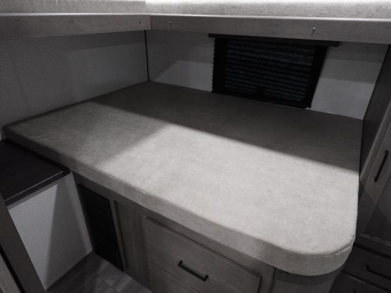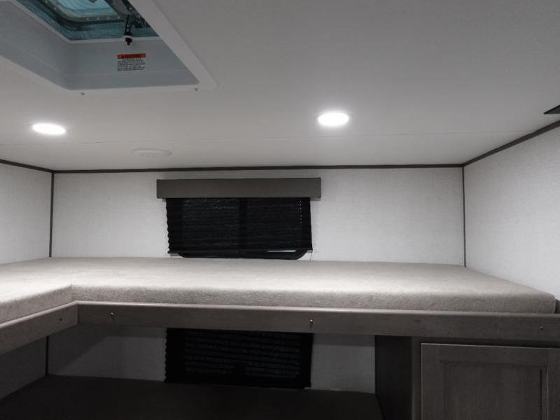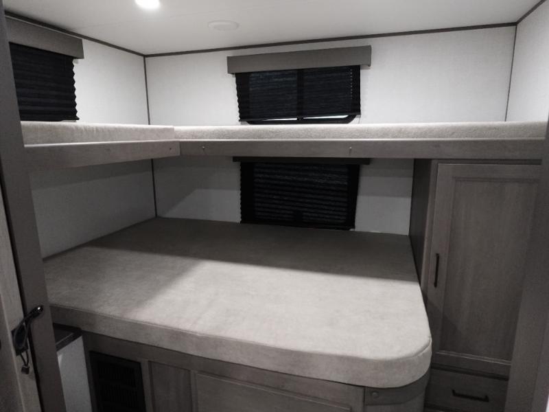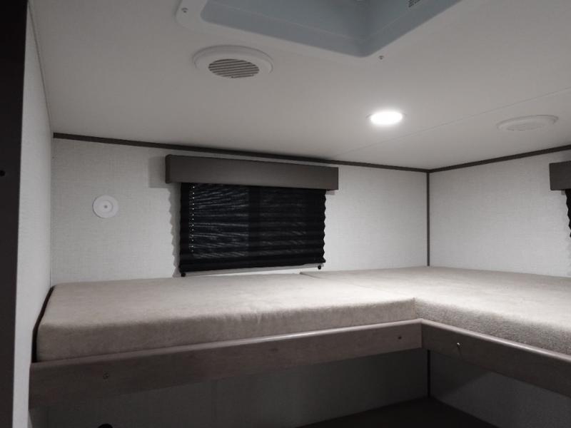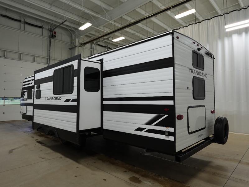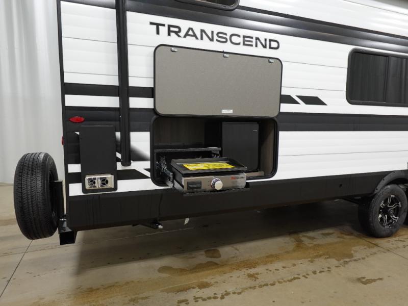 You're going to love every minute spent in this Transcend travel trailer! Your guests or the little ones will have the rear bunkhouse all to themselves that includes a residential full-size bed and two bunks, storage drawers, and TV prep if you want to add a television here. You'll enjoy your own space up front in the private bedroom with a queen bed, storage drawers, and TV prep here also. The exterior is just as accommodating with its 20' awning, rear storage, plus exterior griddle and refrigerator!