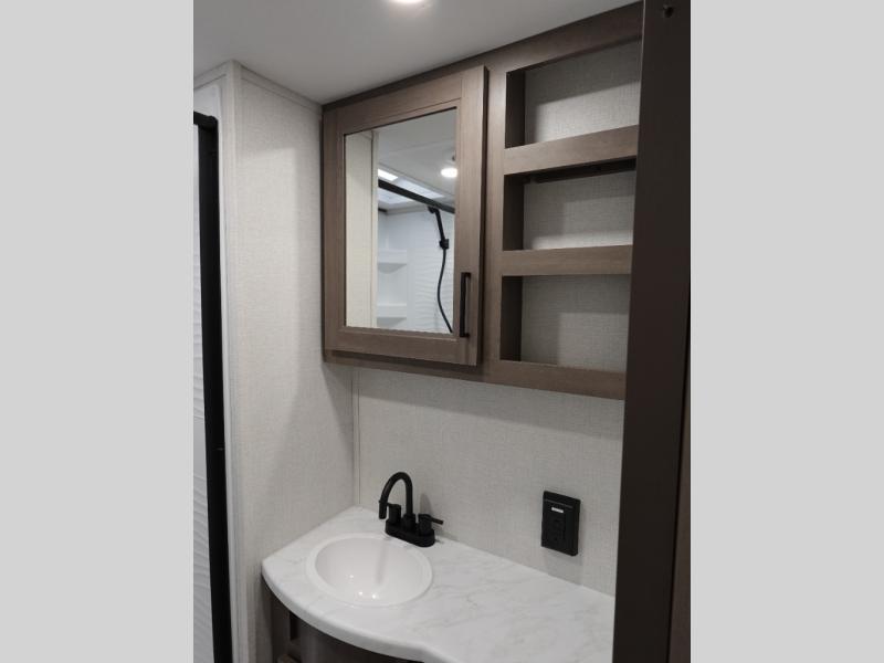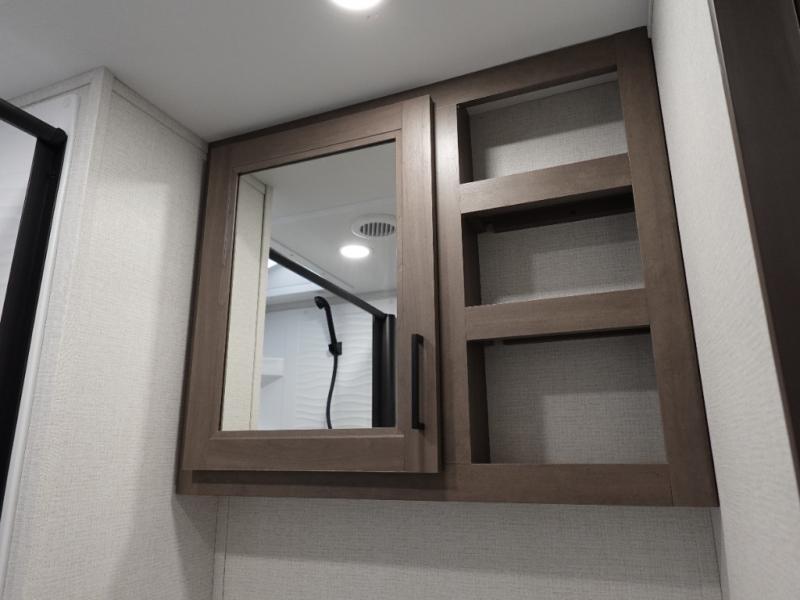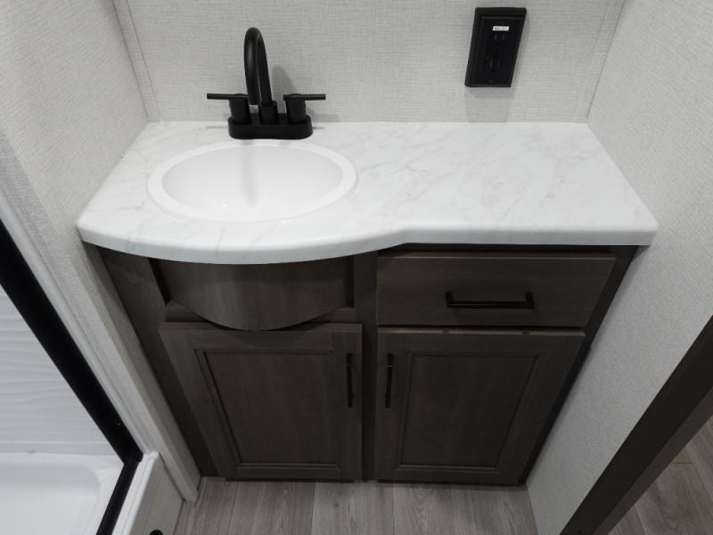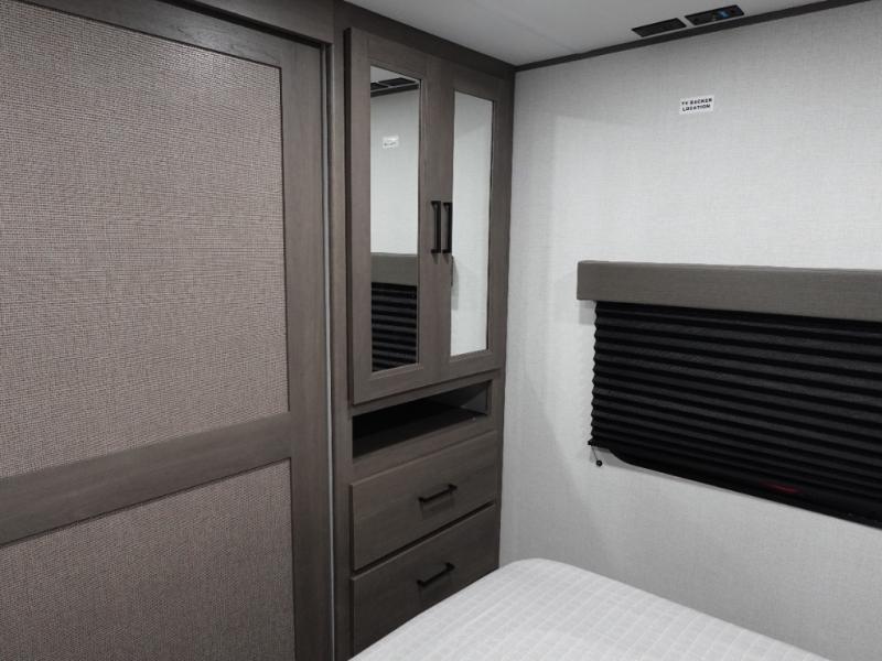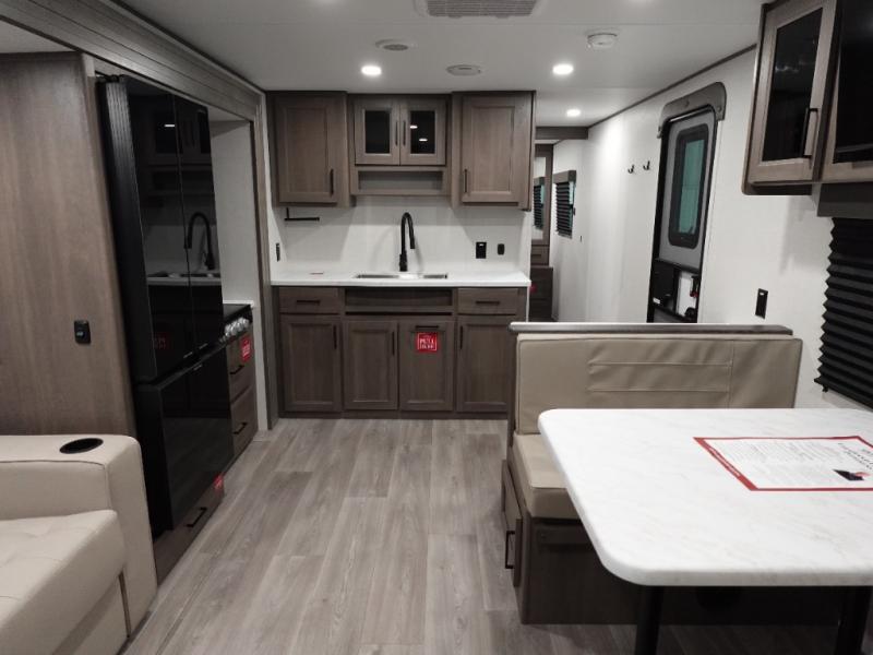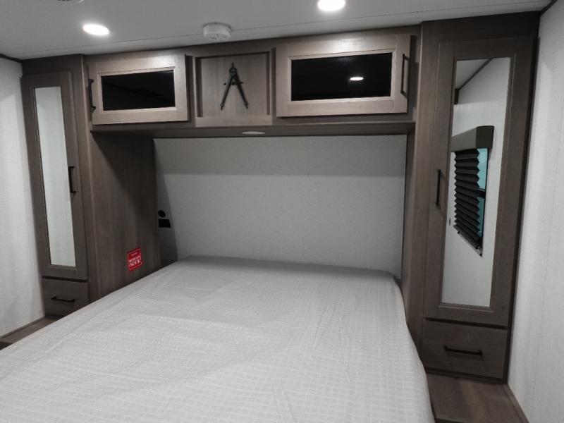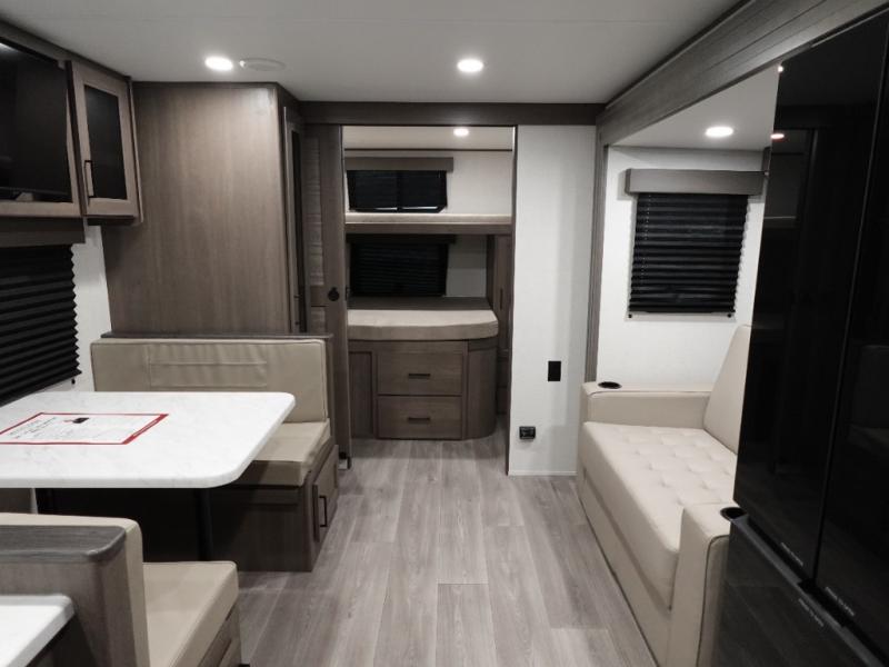 You're going to love every minute spent in this Transcend travel trailer! Your guests or the little ones will have the rear bunkhouse all to themselves that includes a residential full-size bed and two bunks, storage drawers, and TV prep if you want to add a television here. You'll enjoy your own space up front in the private bedroom with a queen bed, storage drawers, and TV prep here also. The exterior is just as accommodating with its 20' awning, rear storage, plus exterior griddle and refrigerator!