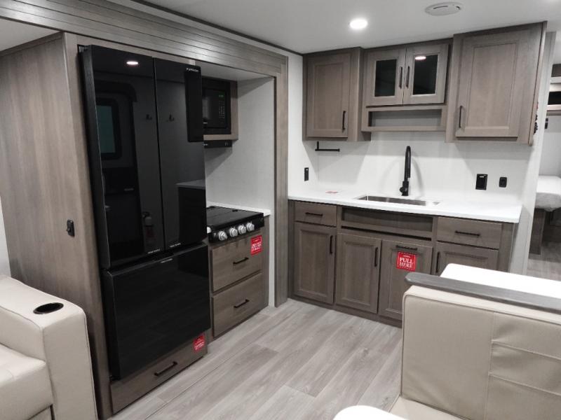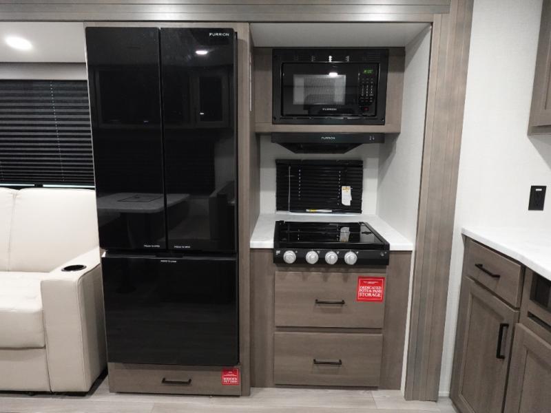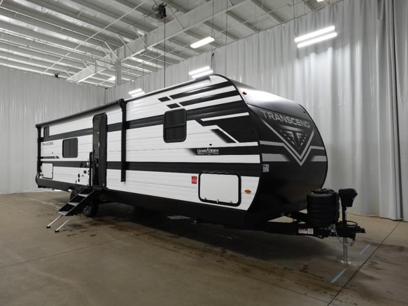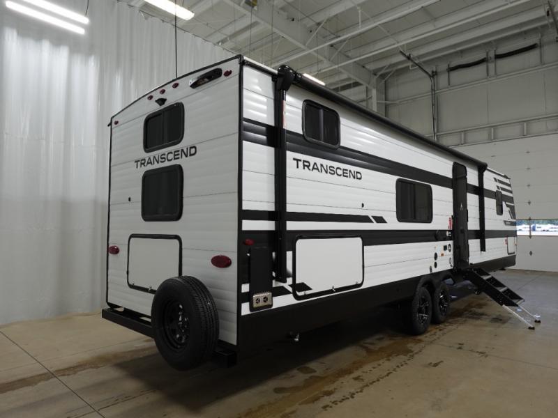 With any Transcend travel trailer by Grand Design, you will enjoy upscale appointments and convenient amenities to make each camping experience one to remember! The Quad Seal technology, residential insulated walls, plus heated and enclosed underbelly with suspended tanks make these units solid and durable. There is a black automotive glass door outside, along with a Safe-T-Rail assist on the main entry door, backup camera prep, and a universal docking station. JBL interior and exterior speakers plus a JBL head unit will let you listen to your favorite tunes as you visit under the power awning with LED strip lights. Inside, you'll enjoy multiple outlets to keep your gadgets charged, thermoformed and seamless countertops, and a 6' 6" interior height so you won't feel closed in. The Solar Prep Package will allow you to enjoy off-grid capabilities with a 200W solar panel, which is wired for up to 600W, a 30 AMP Bluetooth solar controller, a 2000W inverter prep, and more!