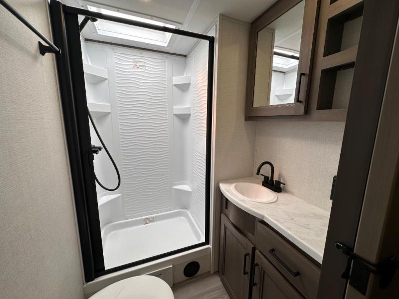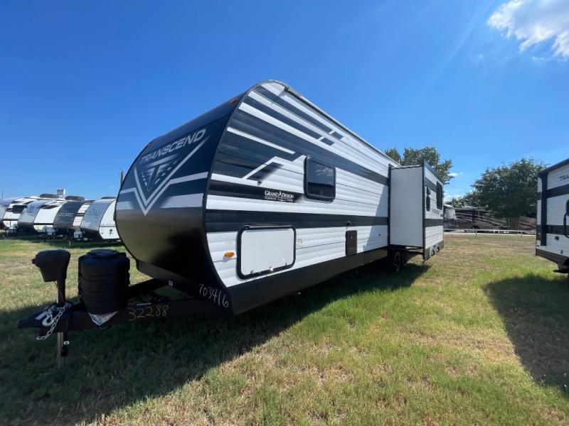 With any Transcend travel trailer by Grand Design, you will enjoy upscale appointments and convenient amenities to make each camping experience one to remember! The Quad Seal technology, residential insulated walls, plus heated and enclosed underbelly with suspended tanks make these units solid and durable. There is a black automotive glass door outside, along with a Safe-T-Rail assist on the main entry door, backup camera prep, and a universal docking station. JBL interior and exterior speakers plus a JBL head unit will let you listen to your favorite tunes as you visit under the power awning with LED strip lights. Inside, you'll enjoy multiple outlets to keep your gadgets charged, thermoformed and seamless countertops, and a 6' 6" interior height so you won't feel closed in. The Solar Prep Package will allow you to enjoy off-grid capabilities with a 200W solar panel, which is wired for up to 600W, a 30 AMP Bluetooth solar controller, a 2000W inverter prep, and more!