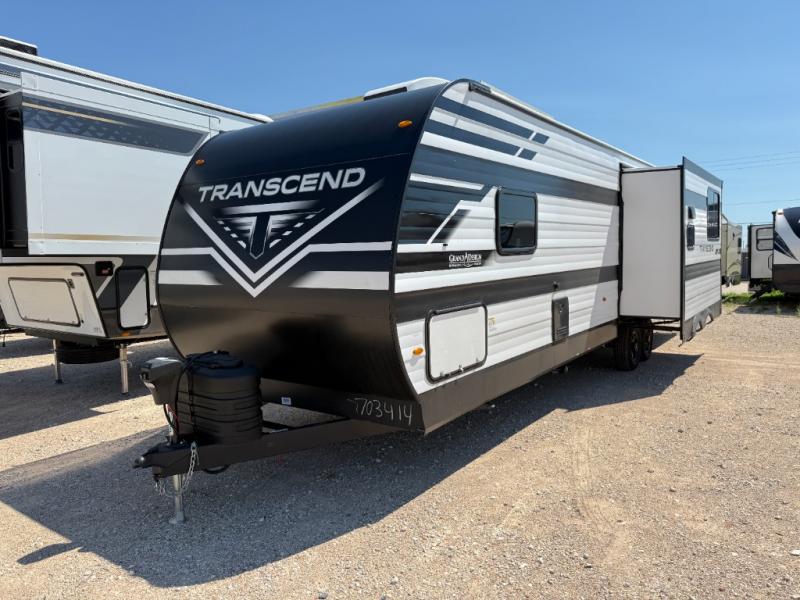 With any Transcend travel trailer by Grand Design, you will enjoy upscale appointments and convenient amenities to make each camping experience one to remember! The Quad Seal technology, residential insulated walls, plus heated and enclosed underbelly with suspended tanks make these units solid and durable. There is a black automotive glass door outside, along with a Safe-T-Rail assist on the main entry door, backup camera prep, and a universal docking station. JBL interior and exterior speakers plus a JBL head unit will let you listen to your favorite tunes as you visit under the power awning with LED strip lights. Inside, you'll enjoy multiple outlets to keep your gadgets charged, thermoformed and seamless countertops, and a 6' 6" interior height so you won't feel closed in. The Solar Prep Package will allow you to enjoy off-grid capabilities with a 200W solar panel, which is wired for up to 600W, a 30 AMP Bluetooth solar controller, a 2000W inverter prep, and more!