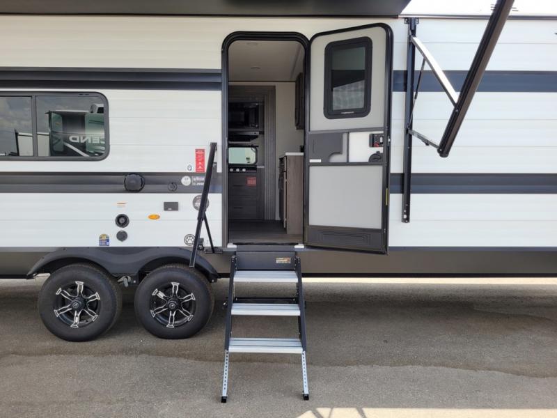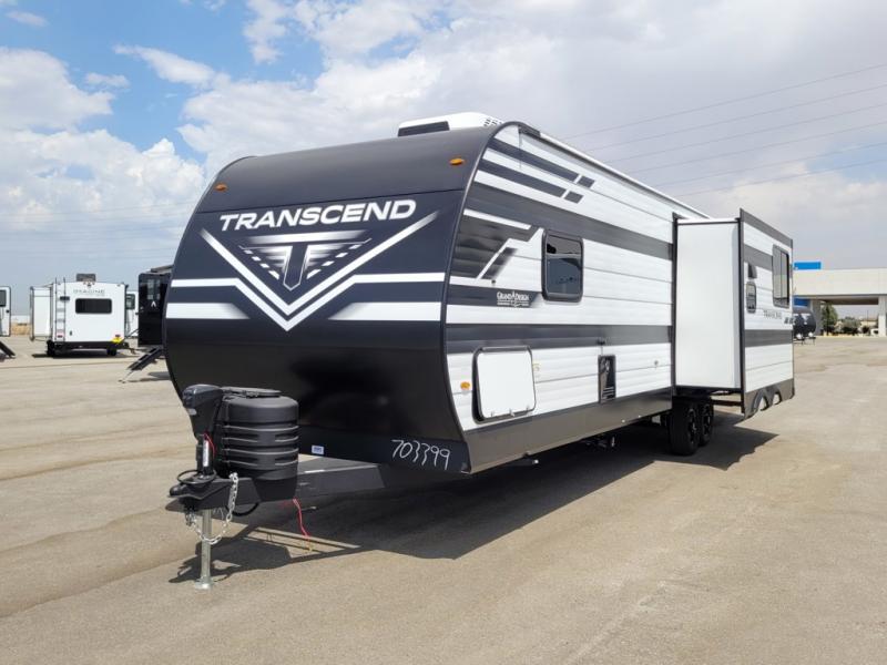 With any Transcend travel trailer by Grand Design, you will enjoy upscale appointments and convenient amenities to make each camping experience one to remember! The Quad Seal technology, residential insulated walls, plus heated and enclosed underbelly with suspended tanks make these units solid and durable. There is a black automotive glass door outside, along with a Safe-T-Rail assist on the main entry door, backup camera prep, and a universal docking station. JBL interior and exterior speakers plus a JBL head unit will let you listen to your favorite tunes as you visit under the power awning with LED strip lights. Inside, you'll enjoy multiple outlets to keep your gadgets charged, thermoformed and seamless countertops, and a 6' 6" interior height so you won't feel closed in. The Solar Prep Package will allow you to enjoy off-grid capabilities with a 200W solar panel, which is wired for up to 600W, a 30 AMP Bluetooth solar controller, a 2000W inverter prep, and more!