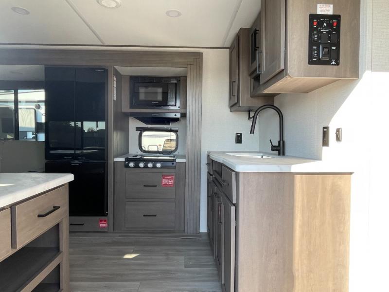 With any Transcend travel trailer by Grand Design, you will enjoy upscale appointments and convenient amenities to make each camping experience one to remember! The Quad Seal technology, residential insulated walls, plus heated and enclosed underbelly with suspended tanks make these units solid and durable. There is a black automotive glass door outside, along with a Safe-T-Rail assist on the main entry door, backup camera prep, and a universal docking station. JBL interior and exterior speakers plus a JBL head unit will let you listen to your favorite tunes as you visit under the power awning with LED strip lights. Inside, you'll enjoy multiple outlets to keep your gadgets charged, thermoformed and seamless countertops, and a 6' 6" interior height so you won't feel closed in. The Solar Prep Package will allow you to enjoy off-grid capabilities with a 200W solar panel, which is wired for up to 600W, a 30 AMP Bluetooth solar controller, a 2000W inverter prep, and more!