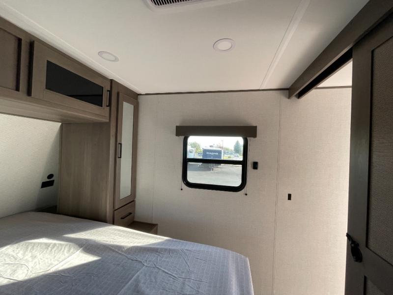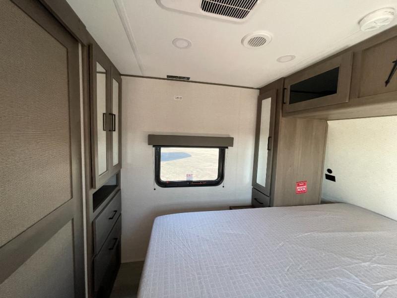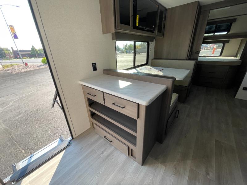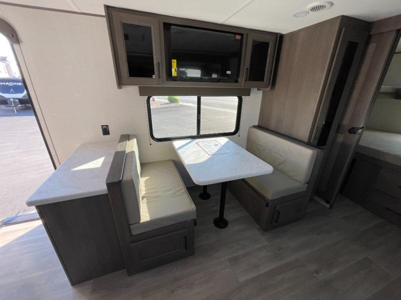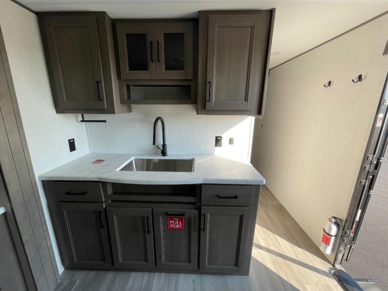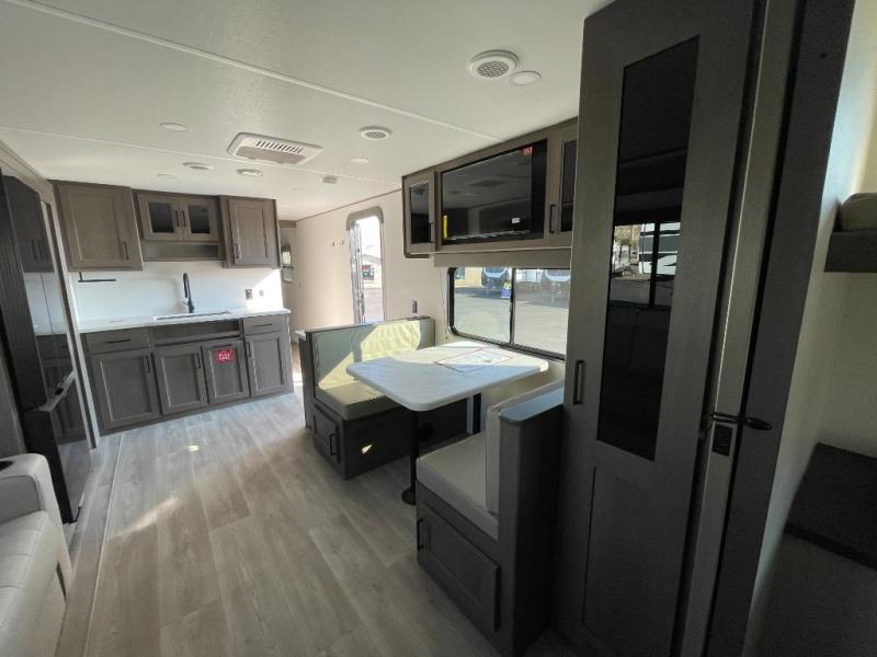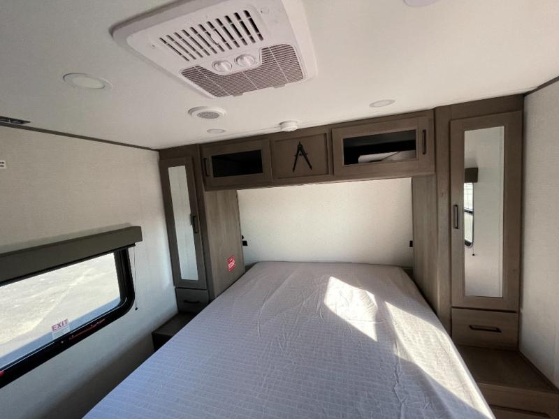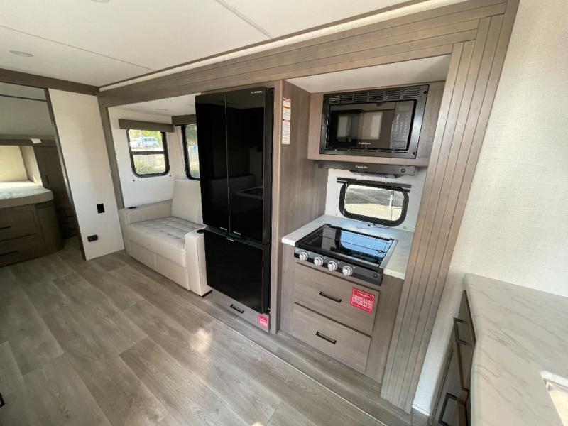 You're going to love every minute spent in this Transcend travel trailer! Your guests or the little ones will have the rear bunkhouse all to themselves that includes a residential full-size bed and two bunks, storage drawers, and TV prep if you want to add a television here. You'll enjoy your own space up front in the private bedroom with a queen bed, storage drawers, and TV prep here also. The combined kitchen and living area includes a sleeper sofa with an optional theater seating, a booth dinette where you can dine together, and a 32" TV for movie nights! The exterior is just as accommodating with its 20' awning, rear storage, plus exterior griddle and refrigerator!