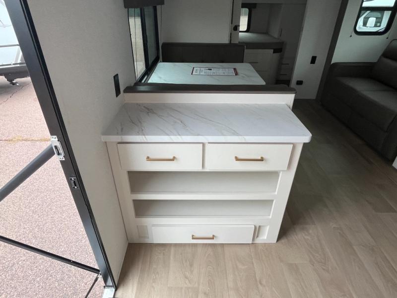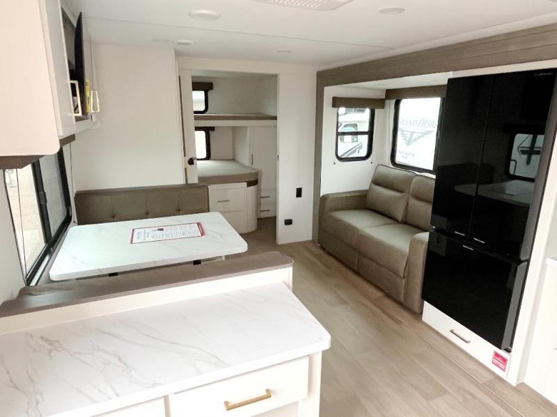 With any Transcend travel trailer by Grand Design, you will enjoy upscale appointments and convenient amenities to make each camping experience one to remember! The Quad Seal technology, residential insulated walls, plus heated and enclosed underbelly with suspended tanks make these units solid and durable. There is a black automotive glass door outside, along with a Safe-T-Rail assist on the main entry door, backup camera prep, and a universal docking station. JBL interior and exterior speakers plus a JBL head unit will let you listen to your favorite tunes as you visit under the power awning with LED strip lights. Inside, you'll enjoy multiple outlets to keep your gadgets charged, thermoformed and seamless countertops, and a 6' 6" interior height so you won't feel closed in. The Solar Prep Package will allow you to enjoy off-grid capabilities with a 200W solar panel, which is wired for up to 600W, a 30 AMP Bluetooth solar controller, a 2000W inverter prep, and more!