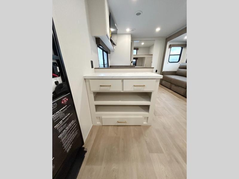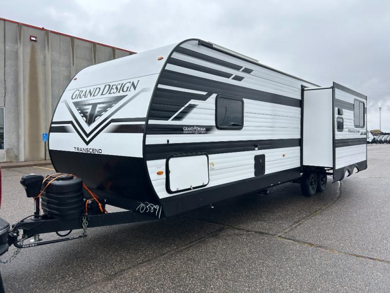With any Transcend travel trailer by Grand Design, you will enjoy upscale appointments and convenient amenities to make each camping experience one to remember! The Quad Seal technology, residential insulated walls, plus heated and enclosed underbelly with suspended tanks make these units solid and durable. There is a black automotive glass door outside, along with a Safe-T-Rail assist on the main entry door, backup camera prep, and a universal docking station. JBL interior and exterior speakers plus a JBL head unit will let you listen to your favorite tunes as you visit under the power awning with LED strip lights. Inside, you'll enjoy multiple outlets to keep your gadgets charged, thermoformed and seamless countertops, and a 6' 6" interior height so you won't feel closed in. The Solar Prep Package will allow you to enjoy off-grid capabilities with a 200W solar panel, which is wired for up to 600W, a 30 AMP Bluetooth solar controller, a 2000W inverter prep, and more!