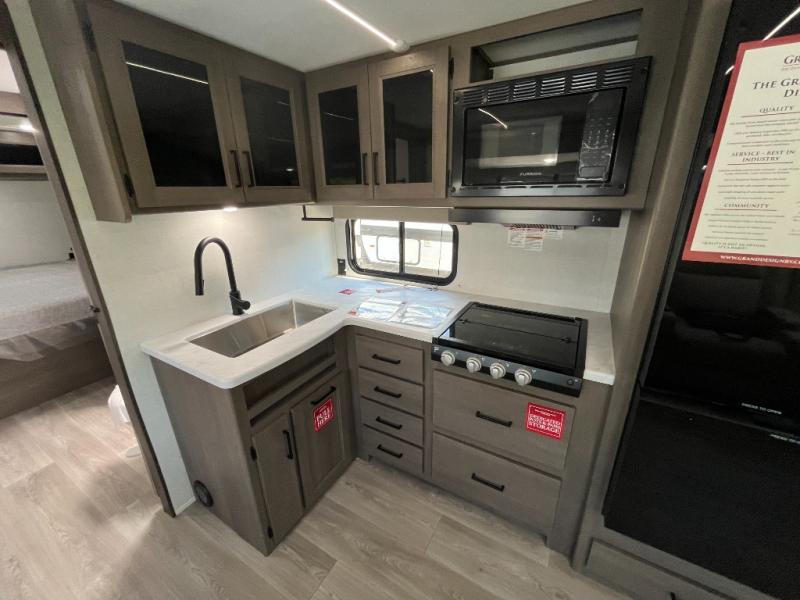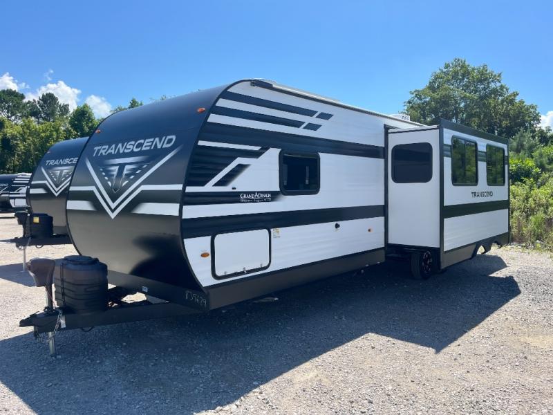 With any Transcend travel trailer by Grand Design, you will enjoy upscale appointments and convenient amenities to make each camping experience one to remember! The Quad Seal technology, residential insulated walls, plus heated and enclosed underbelly with suspended tanks make these units solid and durable. There is a black automotive glass door outside, along with a Safe-T-Rail assist on the main entry door, backup camera prep, and a universal docking station. JBL interior and exterior speakers plus a JBL head unit will let you listen to your favorite tunes as you visit under the power awning with LED strip lights. Inside, you'll enjoy multiple outlets to keep your gadgets charged, thermoformed and seamless countertops, and a 6' 6" interior height so you won't feel closed in. The Solar Prep Package will allow you to enjoy off-grid capabilities with a 200W solar panel, which is wired for up to 600W, a 30 AMP Bluetooth solar controller, a 2000W inverter prep, and more!