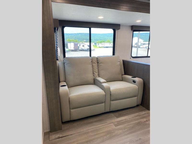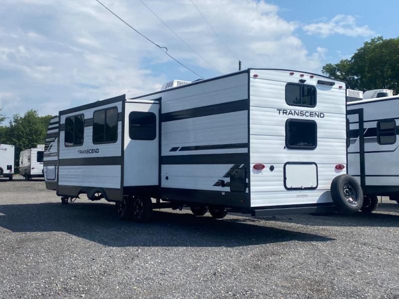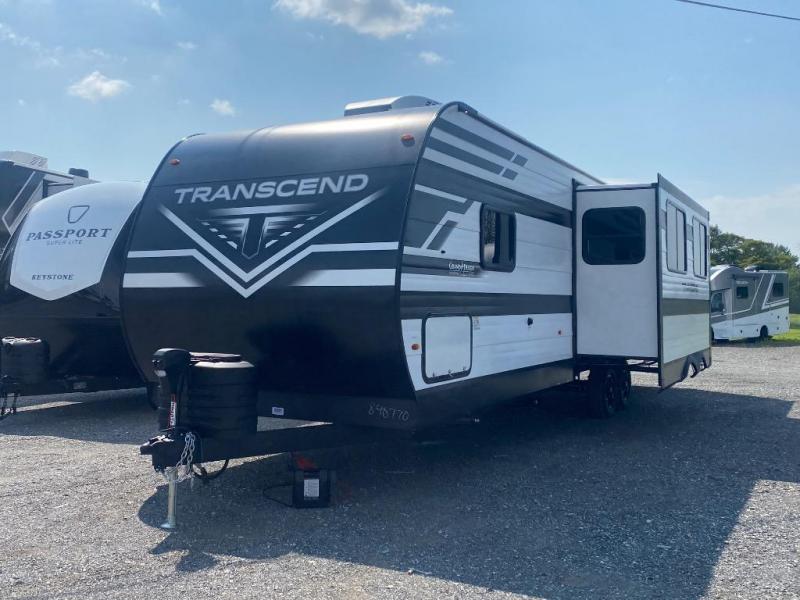 With any Transcend travel trailer by Grand Design, you will enjoy upscale appointments and convenient amenities to make each camping experience one to remember! The Quad Seal technology, residential insulated walls, plus heated and enclosed underbelly with suspended tanks make these units solid and durable. There is a black automotive glass door outside, along with a Safe-T-Rail assist on the main entry door, backup camera prep, and a universal docking station. JBL interior and exterior speakers plus a JBL head unit will let you listen to your favorite tunes as you visit under the power awning with LED strip lights. Inside, you'll enjoy multiple outlets to keep your gadgets charged, thermoformed and seamless countertops, and a 6' 6" interior height so you won't feel closed in. The Solar Prep Package will allow you to enjoy off-grid capabilities with a 200W solar panel, which is wired for up to 600W, a 30 AMP Bluetooth solar controller, a 2000W inverter prep, and more!