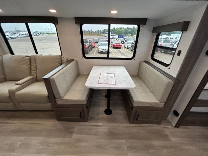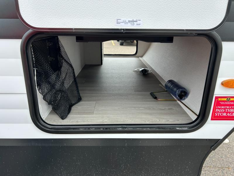 Your crew of nine will love camping in this spacious travel trailer! There are four bunks in the rear bunkhouse, along with storage drawers, and a convenient half bath! A full walk-thru bath will create a front master bedroom you are sure to love, especially with its queen bed, wardrobe storage, and private exterior entry door! The main living area will be a favorite place to hang out with its booth dinette, theater seating, and 32" TV. If the weather is nice, you may just find yourselves outdoors since there is an exterior griddle and 1.7 cu. ft. refrigerator!