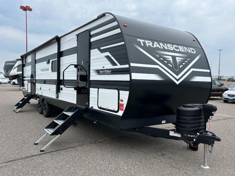 With any Transcend travel trailer by Grand Design, you will enjoy upscale appointments and convenient amenities to make each camping experience one to remember! The Quad Seal technology, residential insulated walls, plus heated and enclosed underbelly with suspended tanks make these units solid and durable. There is a black automotive glass door outside, along with a Safe-T-Rail assist on the main entry door, backup camera prep, and a universal docking station. JBL interior and exterior speakers plus a JBL head unit will let you listen to your favorite tunes as you visit under the power awning with LED strip lights. Inside, you'll enjoy multiple outlets to keep your gadgets charged, thermoformed and seamless countertops, and a 6' 6" interior height so you won't feel closed in. The Solar Prep Package will allow you to enjoy off-grid capabilities with a 200W solar panel, which is wired for up to 600W, a 30 AMP Bluetooth solar controller, a 2000W inverter prep, and more!