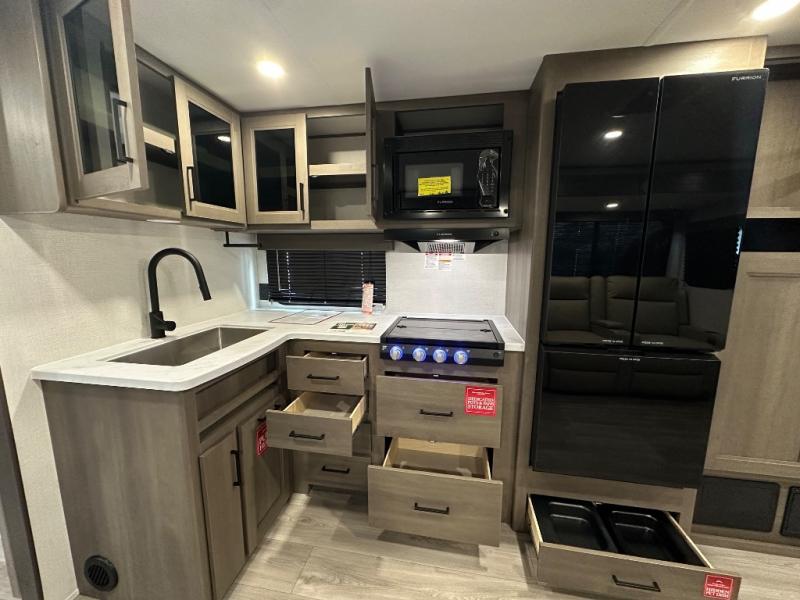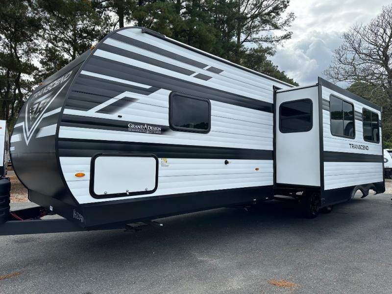With any Transcend travel trailer by Grand Design, you will enjoy upscale appointments and convenient amenities to make each camping experience one to remember! The Quad Seal technology, residential insulated walls, plus heated and enclosed underbelly with suspended tanks make these units solid and durable. There is a black automotive glass door outside, along with a Safe-T-Rail assist on the main entry door, backup camera prep, and a universal docking station. JBL interior and exterior speakers plus a JBL head unit will let you listen to your favorite tunes as you visit under the power awning with LED strip lights. Inside, you'll enjoy multiple outlets to keep your gadgets charged, thermoformed and seamless countertops, and a 6' 6" interior height so you won't feel closed in. The Solar Prep Package will allow you to enjoy off-grid capabilities with a 200W solar panel, which is wired for up to 600W, a 30 AMP Bluetooth solar controller, a 2000W inverter prep, and more!