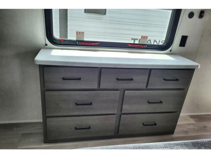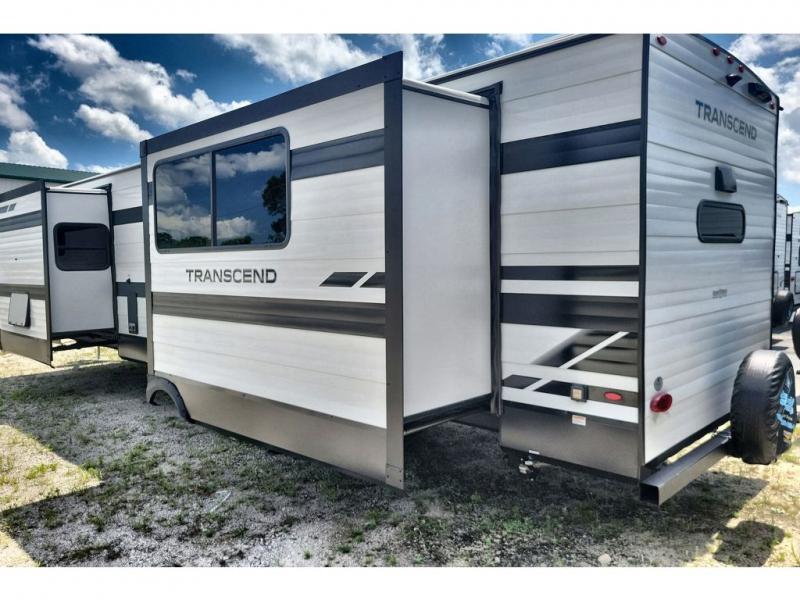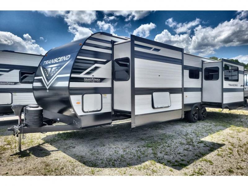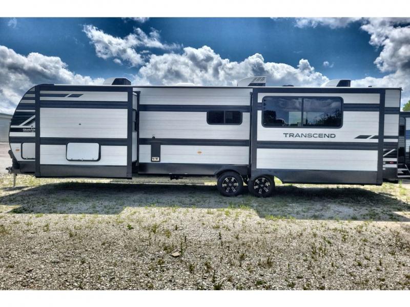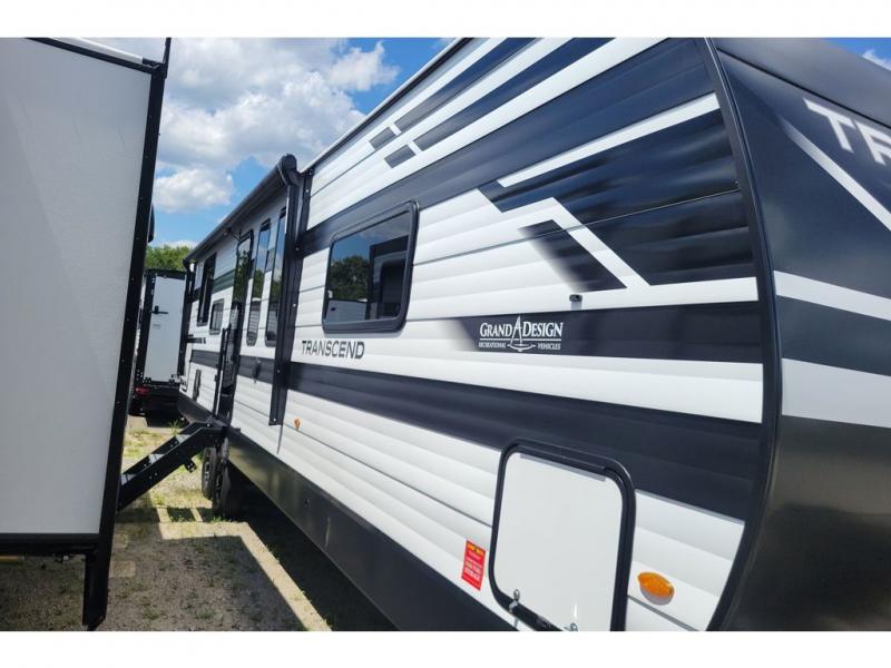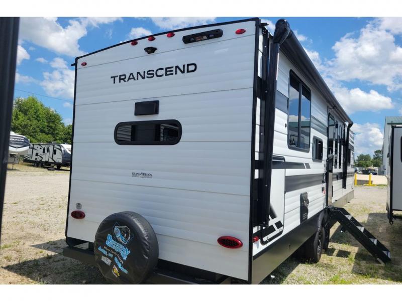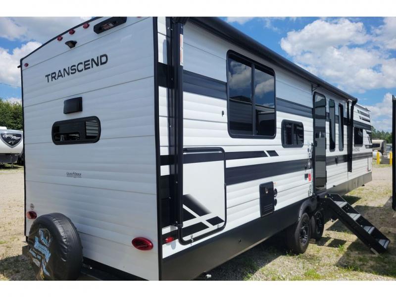 With any Transcend travel trailer by Grand Design, you will enjoy upscale appointments and convenient amenities to make each camping experience one to remember! The Quad Seal technology, residential insulated walls, plus heated and enclosed underbelly with suspended tanks make these units solid and durable. There is a black automotive glass door outside, along with a Safe-T-Rail assist on the main entry door, backup camera prep, and a universal docking station. JBL interior and exterior speakers plus a JBL head unit will let you listen to your favorite tunes as you visit under the power awning with LED strip lights. Inside, you'll enjoy multiple outlets to keep your gadgets charged, thermoformed and seamless countertops, and a 6' 6" interior height so you won't feel closed in. The Solar Prep Package will allow you to enjoy off-grid capabilities with a 200W solar panel, which is wired for up to 600W, a 30 AMP Bluetooth solar controller, a 2000W inverter prep, and more!