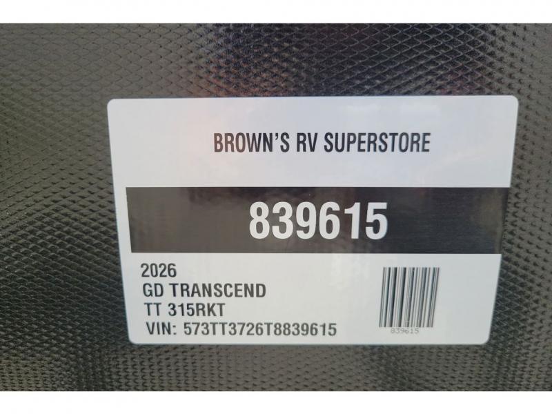New 2026 Grand Design Transcend 315RKT Travel Trailer