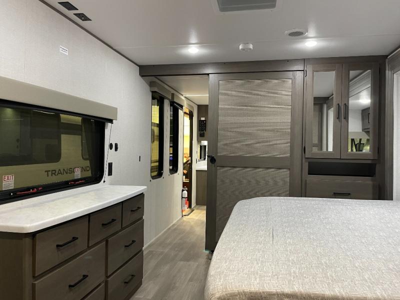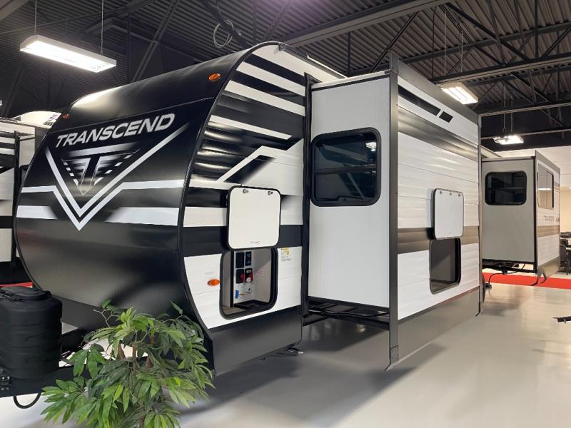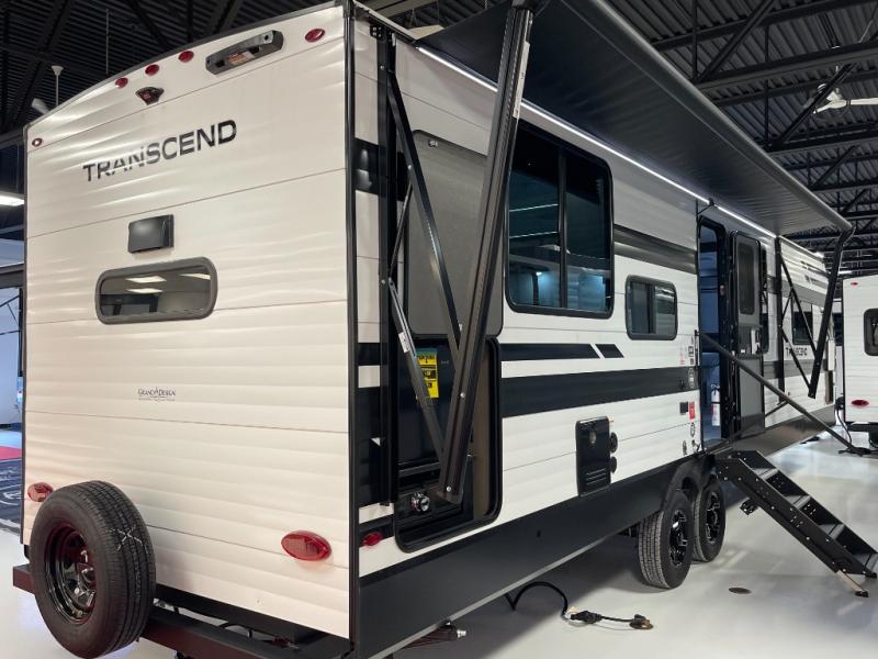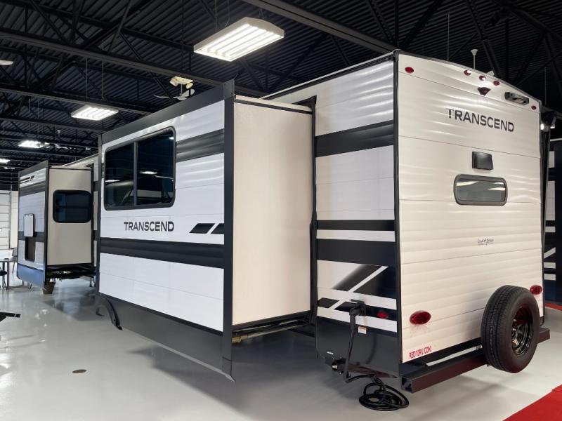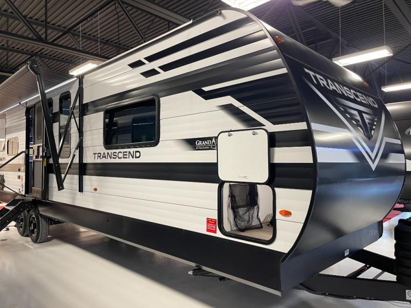 With any Transcend travel trailer by Grand Design, you will enjoy upscale appointments and convenient amenities to make each camping experience one to remember! The Quad Seal technology, residential insulated walls, plus heated and enclosed underbelly with suspended tanks make these units solid and durable. There is a black automotive glass door outside, along with a Safe-T-Rail assist on the main entry door, backup camera prep, and a universal docking station. JBL interior and exterior speakers plus a JBL head unit will let you listen to your favorite tunes as you visit under the power awning with LED strip lights. Inside, you'll enjoy multiple outlets to keep your gadgets charged, thermoformed and seamless countertops, and a 6' 6" interior height so you won't feel closed in. The Solar Prep Package will allow you to enjoy off-grid capabilities with a 200W solar panel, which is wired for up to 600W, a 30 AMP Bluetooth solar controller, a 2000W inverter prep, and more!