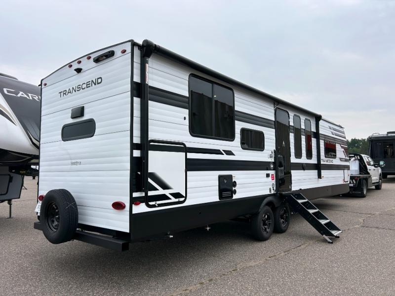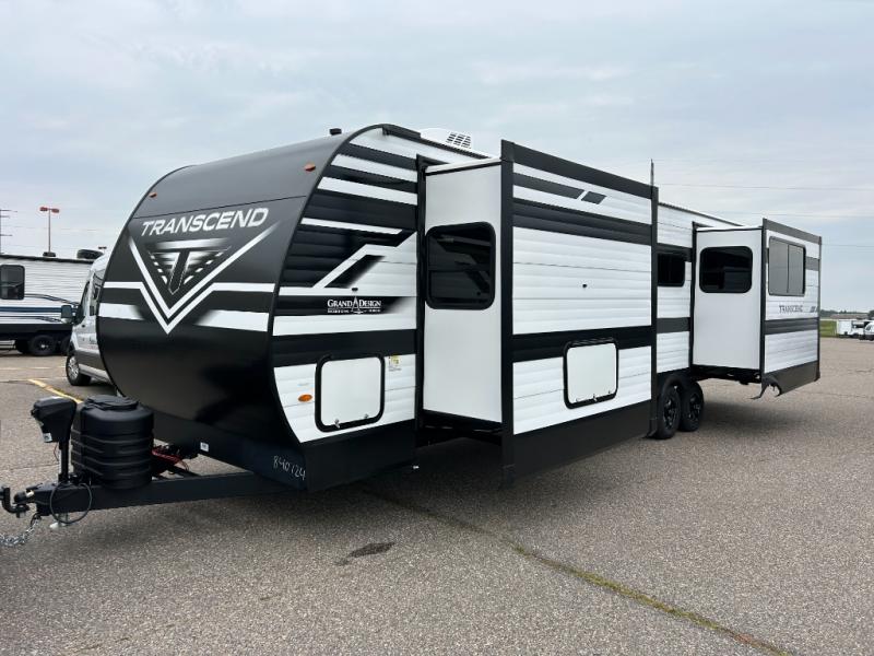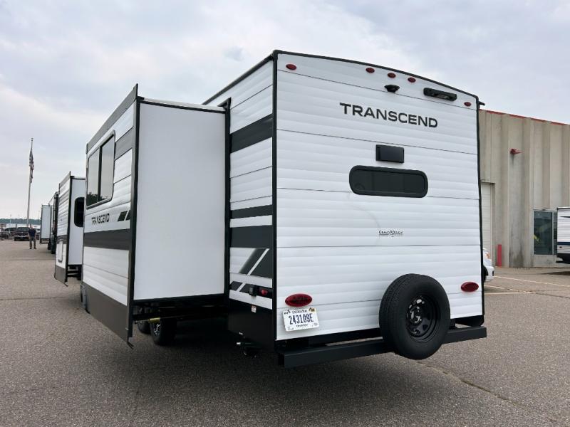 With any Transcend travel trailer by Grand Design, you will enjoy upscale appointments and convenient amenities to make each camping experience one to remember! The Quad Seal technology, residential insulated walls, plus heated and enclosed underbelly with suspended tanks make these units solid and durable. There is a black automotive glass door outside, along with a Safe-T-Rail assist on the main entry door, backup camera prep, and a universal docking station. JBL interior and exterior speakers plus a JBL head unit will let you listen to your favorite tunes as you visit under the power awning with LED strip lights. Inside, you'll enjoy multiple outlets to keep your gadgets charged, thermoformed and seamless countertops, and a 6' 6" interior height so you won't feel closed in. The Solar Prep Package will allow you to enjoy off-grid capabilities with a 200W solar panel, which is wired for up to 600W, a 30 AMP Bluetooth solar controller, a 2000W inverter prep, and more!