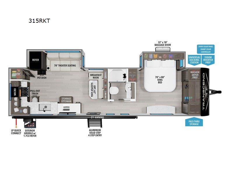 Grand Design Transcend travel trailer 315RKT highlights: