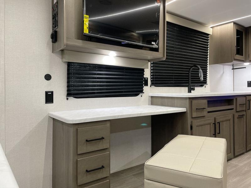 With any Transcend travel trailer by Grand Design, you will enjoy upscale appointments and convenient amenities to make each camping experience one to remember! The Quad Seal technology, residential insulated walls, plus heated and enclosed underbelly with suspended tanks make these units solid and durable. There is a black automotive glass door outside, along with a Safe-T-Rail assist on the main entry door, backup camera prep, and a universal docking station. JBL interior and exterior speakers plus a JBL head unit will let you listen to your favorite tunes as you visit under the power awning with LED strip lights. Inside, you'll enjoy multiple outlets to keep your gadgets charged, thermoformed and seamless countertops, and a 6' 6" interior height so you won't feel closed in. The Solar Prep Package will allow you to enjoy off-grid capabilities with a 200W solar panel, which is wired for up to 600W, a 30 AMP Bluetooth solar controller, a 2000W inverter prep, and more!