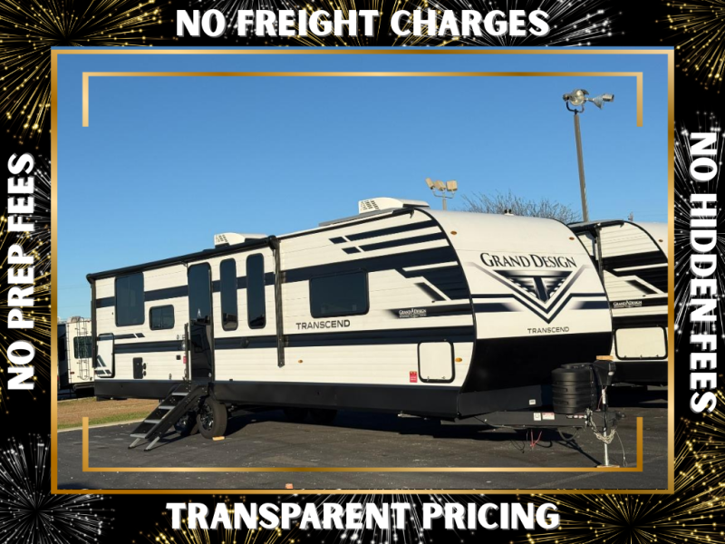 With any Transcend travel trailer by Grand Design, you will enjoy upscale appointments and convenient amenities to make each camping experience one to remember! The Quad Seal technology, residential insulated walls, plus heated and enclosed underbelly with suspended tanks make these units solid and durable. There is a black automotive glass door outside, along with a Safe-T-Rail assist on the main entry door, backup camera prep, and a universal docking station. JBL interior and exterior speakers plus a JBL head unit will let you listen to your favorite tunes as you visit under the power awning with LED strip lights. Inside, you'll enjoy multiple outlets to keep your gadgets charged, thermoformed and seamless countertops, and a 6' 6" interior height so you won't feel closed in. The Solar Prep Package will allow you to enjoy off-grid capabilities with a 200W solar panel, which is wired for up to 600W, a 30 AMP Bluetooth solar controller, a 2000W inverter prep, and more!