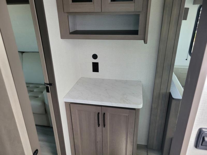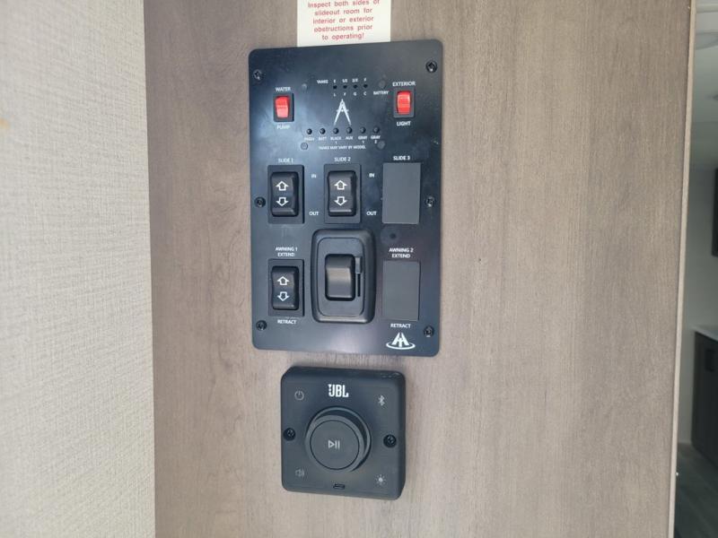 With any Transcend travel trailer by Grand Design, you will enjoy upscale appointments and convenient amenities to make each camping experience one to remember! The Quad Seal technology, residential insulated walls, plus heated and enclosed underbelly with suspended tanks make these units solid and durable. There is a black automotive glass door outside, along with a Safe-T-Rail assist on the main entry door, backup camera prep, and a universal docking station. JBL interior and exterior speakers plus a JBL head unit will let you listen to your favorite tunes as you visit under the power awning with LED strip lights. Inside, you'll enjoy multiple outlets to keep your gadgets charged, thermoformed and seamless countertops, and a 6' 6" interior height so you won't feel closed in. The Solar Prep Package will allow you to enjoy off-grid capabilities with a 200W solar panel, which is wired for up to 600W, a 30 AMP Bluetooth solar controller, a 2000W inverter prep, and more!