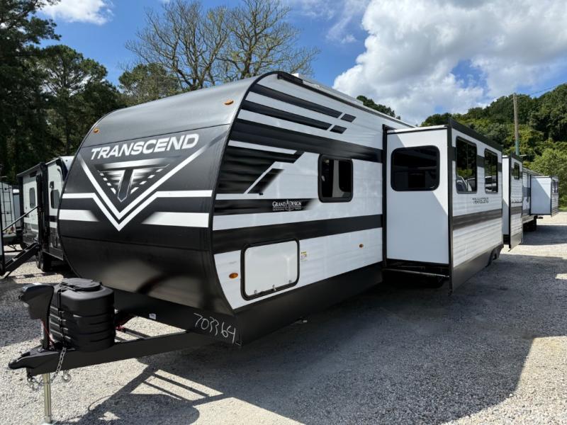 With any Transcend travel trailer by Grand Design, you will enjoy upscale appointments and convenient amenities to make each camping experience one to remember! The Quad Seal technology, residential insulated walls, plus heated and enclosed underbelly with suspended tanks make these units solid and durable. There is a black automotive glass door outside, along with a Safe-T-Rail assist on the main entry door, backup camera prep, and a universal docking station. JBL interior and exterior speakers plus a JBL head unit will let you listen to your favorite tunes as you visit under the power awning with LED strip lights. Inside, you'll enjoy multiple outlets to keep your gadgets charged, thermoformed and seamless countertops, and a 6' 6" interior height so you won't feel closed in. The Solar Prep Package will allow you to enjoy off-grid capabilities with a 200W solar panel, which is wired for up to 600W, a 30 AMP Bluetooth solar controller, a 2000W inverter prep, and more!