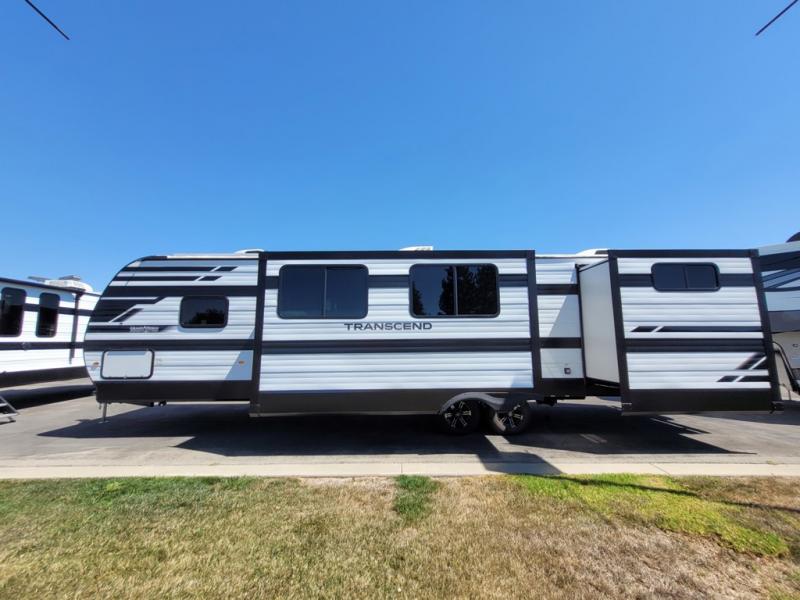 With any Transcend travel trailer by Grand Design, you will enjoy upscale appointments and convenient amenities to make each camping experience one to remember! The Quad Seal technology, residential insulated walls, plus heated and enclosed underbelly with suspended tanks make these units solid and durable. There is a black automotive glass door outside, along with a Safe-T-Rail assist on the main entry door, backup camera prep, and a universal docking station. JBL interior and exterior speakers plus a JBL head unit will let you listen to your favorite tunes as you visit under the power awning with LED strip lights. Inside, you'll enjoy multiple outlets to keep your gadgets charged, thermoformed and seamless countertops, and a 6' 6" interior height so you won't feel closed in. The Solar Prep Package will allow you to enjoy off-grid capabilities with a 200W solar panel, which is wired for up to 600W, a 30 AMP Bluetooth solar controller, a 2000W inverter prep, and more!