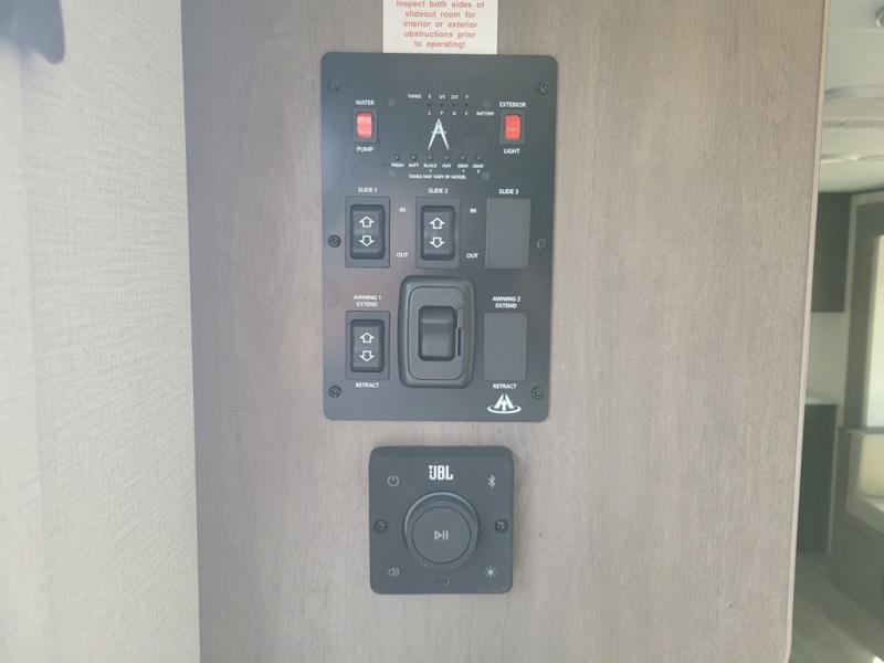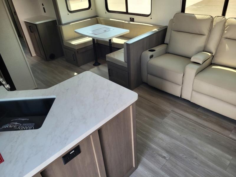 With any Transcend travel trailer by Grand Design, you will enjoy upscale appointments and convenient amenities to make each camping experience one to remember! The Quad Seal technology, residential insulated walls, plus heated and enclosed underbelly with suspended tanks make these units solid and durable. There is a black automotive glass door outside, along with a Safe-T-Rail assist on the main entry door, backup camera prep, and a universal docking station. JBL interior and exterior speakers plus a JBL head unit will let you listen to your favorite tunes as you visit under the power awning with LED strip lights. Inside, you'll enjoy multiple outlets to keep your gadgets charged, thermoformed and seamless countertops, and a 6' 6" interior height so you won't feel closed in. The Solar Prep Package will allow you to enjoy off-grid capabilities with a 200W solar panel, which is wired for up to 600W, a 30 AMP Bluetooth solar controller, a 2000W inverter prep, and more!