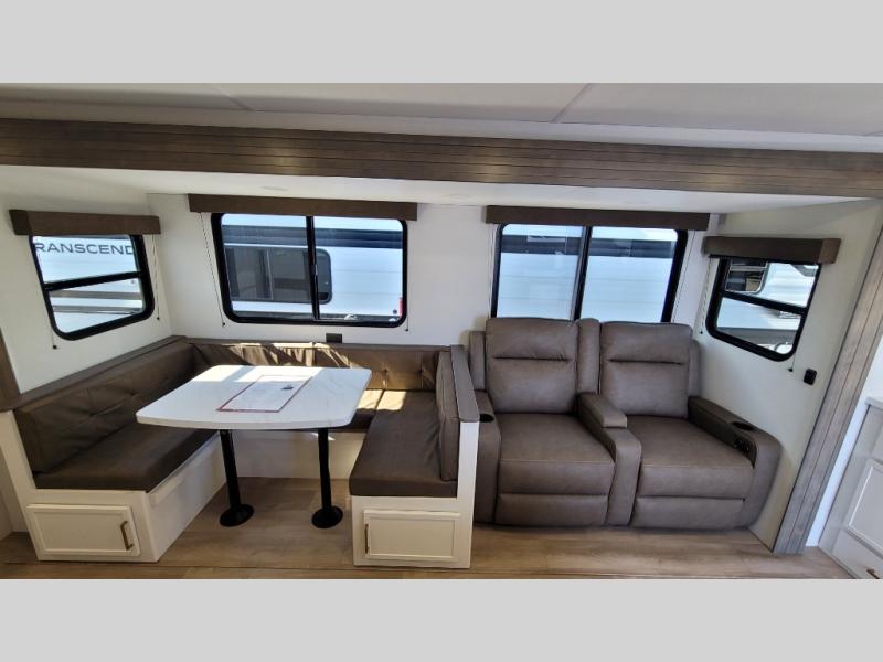With any Transcend travel trailer by Grand Design, you will enjoy upscale appointments and convenient amenities to make each camping experience one to remember! The Quad Seal technology, residential insulated walls, plus heated and enclosed underbelly with suspended tanks make these units solid and durable. There is a black automotive glass door outside, along with a Safe-T-Rail assist on the main entry door, backup camera prep, and a universal docking station. JBL interior and exterior speakers plus a JBL head unit will let you listen to your favorite tunes as you visit under the power awning with LED strip lights. Inside, you'll enjoy multiple outlets to keep your gadgets charged, thermoformed and seamless countertops, and a 6' 6" interior height so you won't feel closed in. The Solar Prep Package will allow you to enjoy off-grid capabilities with a 200W solar panel, which is wired for up to 600W, a 30 AMP Bluetooth solar controller, a 2000W inverter prep, and more!
