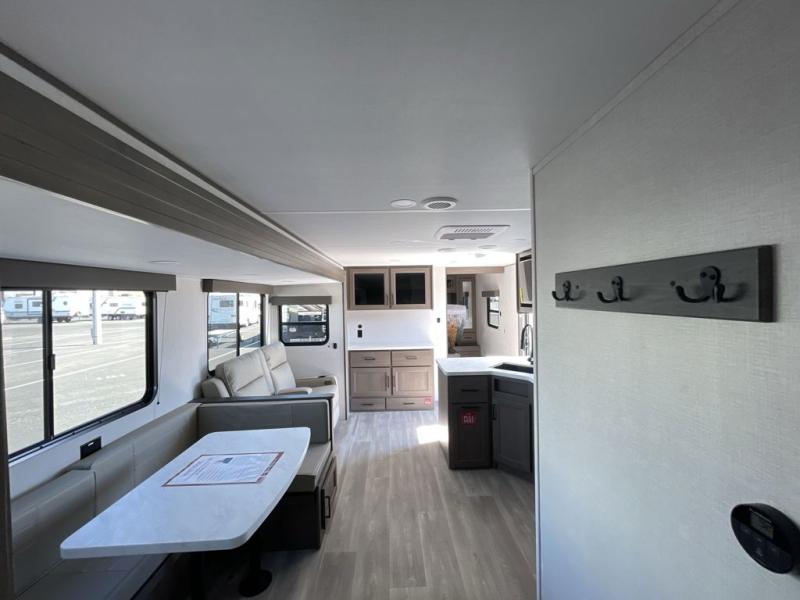 If you’re searching for a travel trailer that truly accommodates the whole family, the Transcend 325BHT delivers in a big way. The rear private bunkhouse is a standout feature, offering three bunks, a sleeper sofa, and built-in storage drawers, creating a dedicated space for kids or guests to relax, sleep, and recharge.