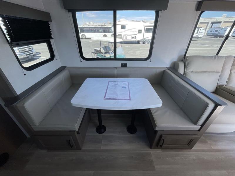 The main living area is designed for togetherness, thanks to the large slide out that houses the U-shaped dinette and 60" sleeper sofa, giving you plenty of seating for meals, games, and relaxing evenings. Prefer lounging over extra sleeping space? Opt for the available theater seating.
