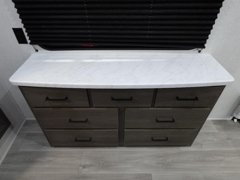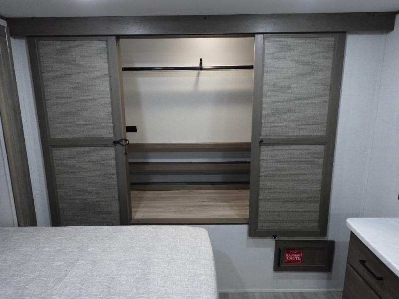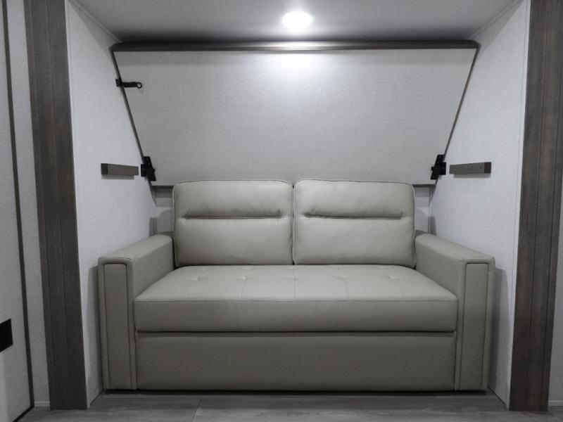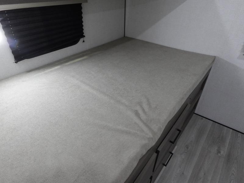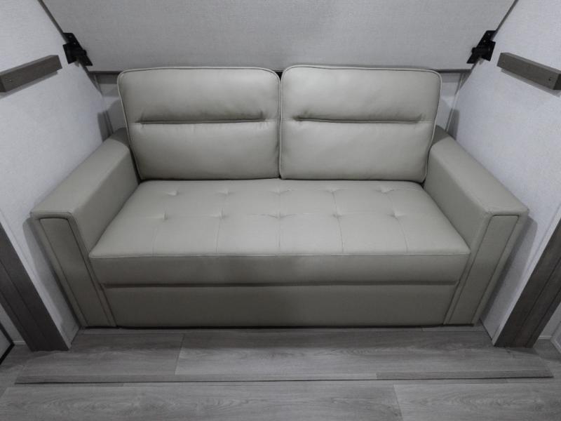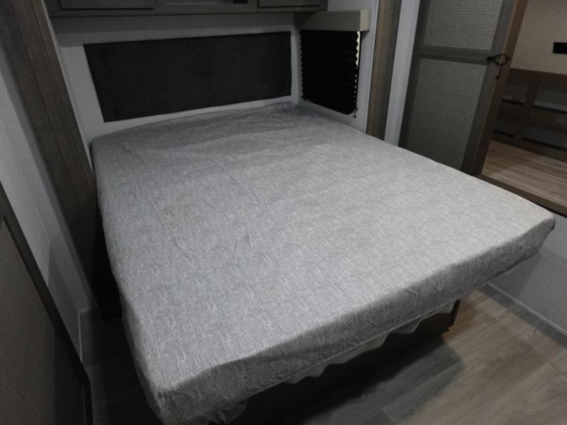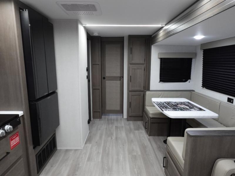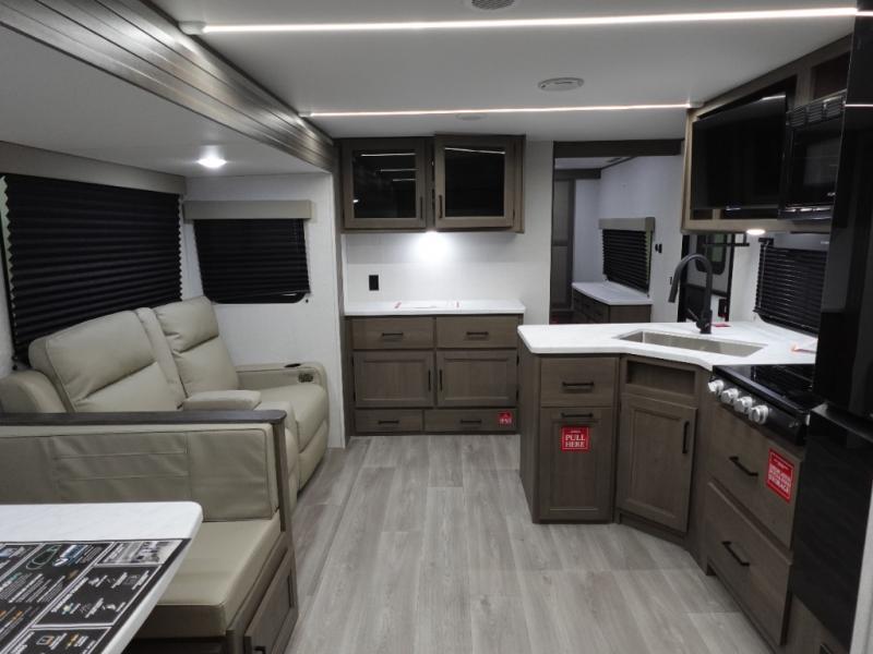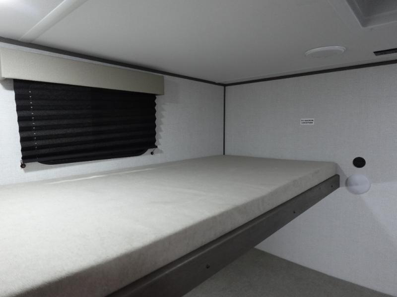 If you're looking for a travel trailer that can house your whole gang, this unit is the one! The rear private bunkhouse can sleep up to five since there is a sleeper sofa and three bunks, plus there are storage drawers for your guests' things. A front private bedroom will be perfect for the owners with a queen bed slide out and spacious front closet with washer and dryer prep! Whether you cook outside on the exterior griddle or inside on the three burner range, you'll be able to make your best meals. There is also a 12V French door refrigerator with a glass front and bottom freezer and a convection microwave/combo air fryer to enjoy some crispy fries! A U-shaped dinette and 60" sleeper sofa within the living room slide provides even more seating and sleeping space!