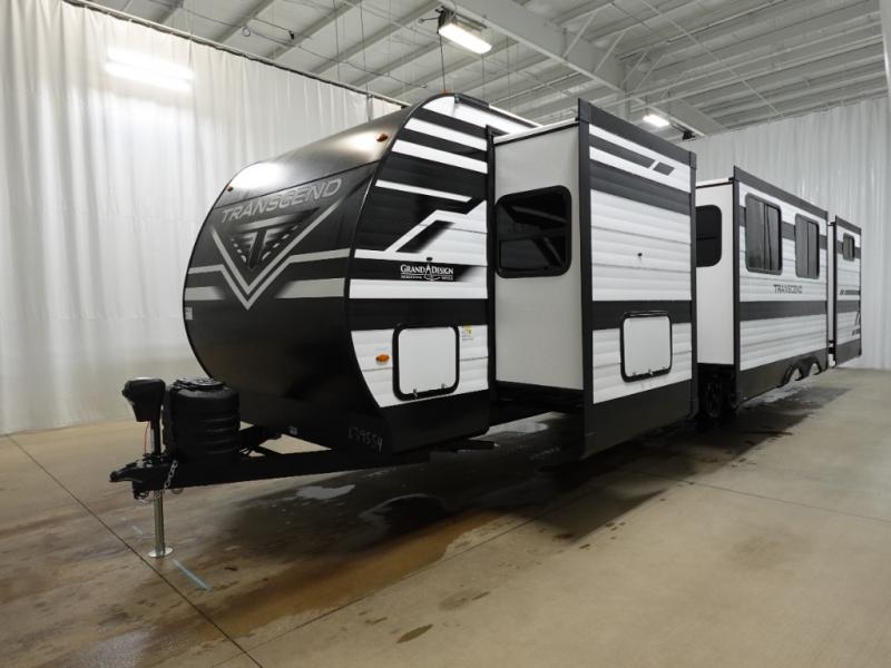 With any Transcend travel trailer by Grand Design, you will enjoy upscale appointments and convenient amenities to make each camping experience one to remember! The Quad Seal technology, residential insulated walls, plus heated and enclosed underbelly with suspended tanks make these units solid and durable. There is a black automotive glass door outside, along with a Safe-T-Rail assist on the main entry door, backup camera prep, and a universal docking station. JBL interior and exterior speakers plus a JBL head unit will let you listen to your favorite tunes as you visit under the power awning with LED strip lights. Inside, you'll enjoy multiple outlets to keep your gadgets charged, thermoformed and seamless countertops, and a 6' 6" interior height so you won't feel closed in. The Solar Prep Package will allow you to enjoy off-grid capabilities with a 200W solar panel, which is wired for up to 600W, a 30 AMP Bluetooth solar controller, a 2000W inverter prep, and more!
