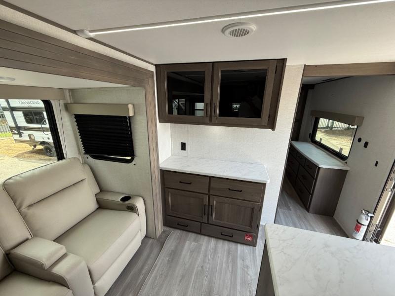 With any Transcend travel trailer by Grand Design, you will enjoy upscale appointments and convenient amenities to make each camping experience one to remember! The Quad Seal technology, residential insulated walls, plus heated and enclosed underbelly with suspended tanks make these units solid and durable. There is a black automotive glass door outside, along with a Safe-T-Rail assist on the main entry door, backup camera prep, and a universal docking station. JBL interior and exterior speakers plus a JBL head unit will let you listen to your favorite tunes as you visit under the power awning with LED strip lights. Inside, you'll enjoy multiple outlets to keep your gadgets charged, thermoformed and seamless countertops, and a 6' 6" interior height so you won't feel closed in. The Solar Prep Package will allow you to enjoy off-grid capabilities with a 200W solar panel, which is wired for up to 600W, a 30 AMP Bluetooth solar controller, a 2000W inverter prep, and more!