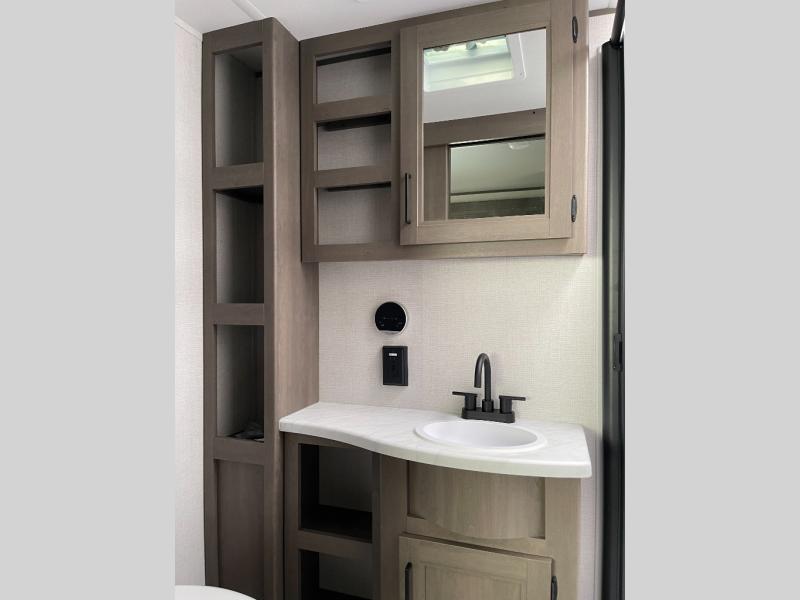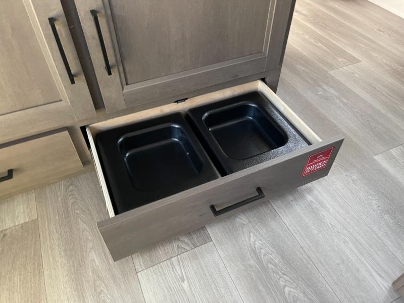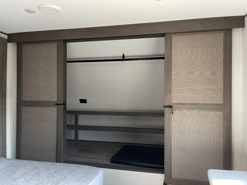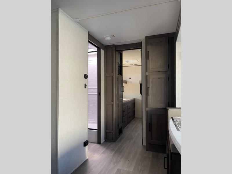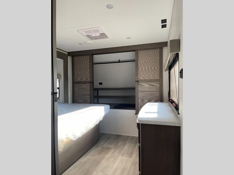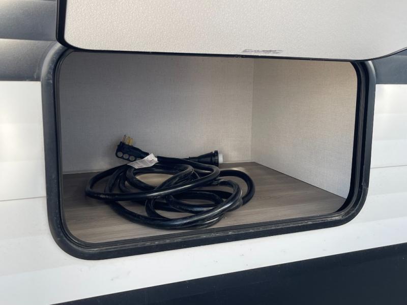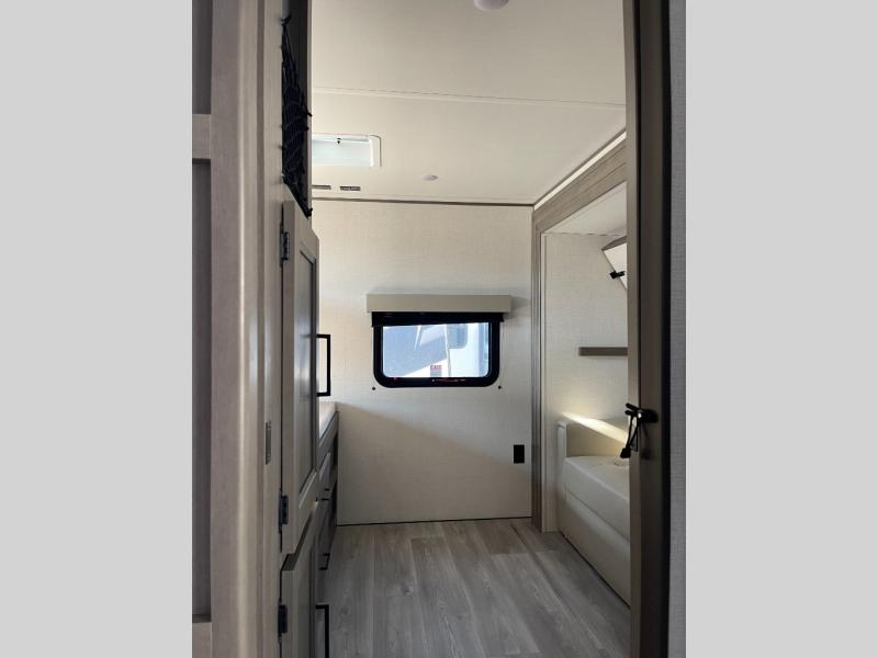 If you're looking for a travel trailer that can house your whole gang, this unit is the one! The rear private bunkhouse can sleep up to five since there is a sleeper sofa and three bunks, plus there are storage drawers for your guests' things. A front private bedroom will be perfect for the owners with a queen bed slide out and spacious front closet with washer and dryer prep! Whether you cook outside on the exterior griddle or inside on the three burner range, you'll be able to make your best meals. There is also a 12V French door refrigerator with a glass front and bottom freezer and a convection microwave/combo air fryer to enjoy some crispy fries! A U-shaped dinette and 60" sleeper sofa within the living room slide provides even more seating and sleeping space!