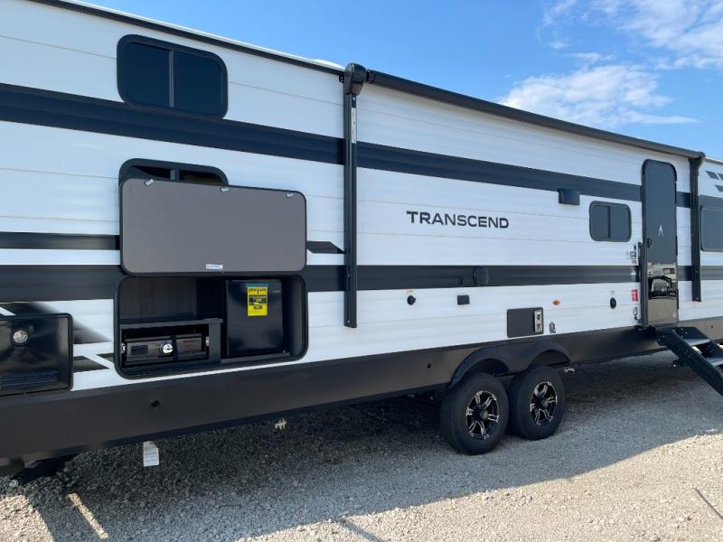 With any Transcend travel trailer by Grand Design, you will enjoy upscale appointments and convenient amenities to make each camping experience one to remember! The Quad Seal technology, residential insulated walls, plus heated and enclosed underbelly with suspended tanks make these units solid and durable. There is a black automotive glass door outside, along with a Safe-T-Rail assist on the main entry door, backup camera prep, and a universal docking station. JBL interior and exterior speakers plus a JBL head unit will let you listen to your favorite tunes as you visit under the power awning with LED strip lights. Inside, you'll enjoy multiple outlets to keep your gadgets charged, thermoformed and seamless countertops, and a 6' 6" interior height so you won't feel closed in. The Solar Prep Package will allow you to enjoy off-grid capabilities with a 200W solar panel, which is wired for up to 600W, a 30 AMP Bluetooth solar controller, a 2000W inverter prep, and more!