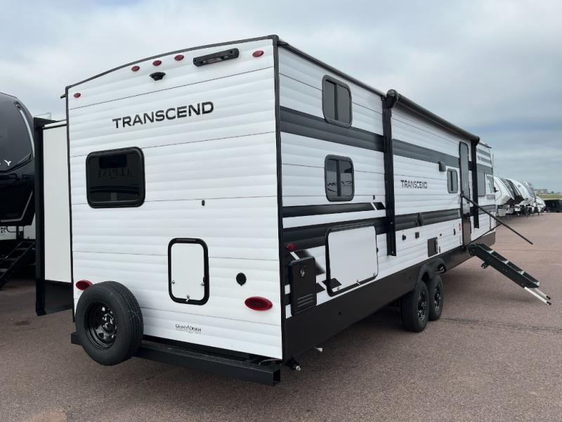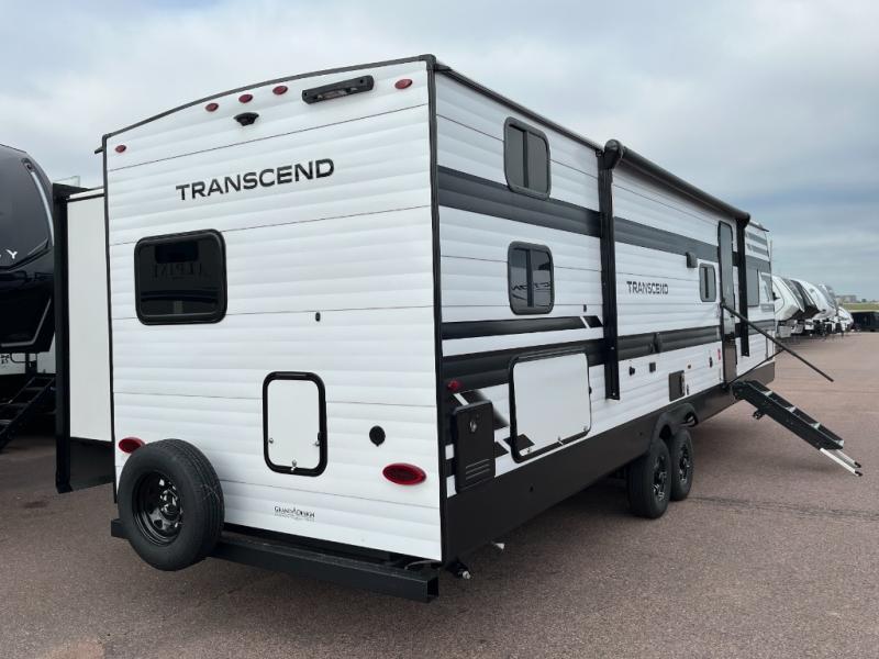 With any Transcend travel trailer by Grand Design, you will enjoy upscale appointments and convenient amenities to make each camping experience one to remember! The Quad Seal technology, residential insulated walls, plus heated and enclosed underbelly with suspended tanks make these units solid and durable. There is a black automotive glass door outside, along with a Safe-T-Rail assist on the main entry door, backup camera prep, and a universal docking station. JBL interior and exterior speakers plus a JBL head unit will let you listen to your favorite tunes as you visit under the power awning with LED strip lights. Inside, you'll enjoy multiple outlets to keep your gadgets charged, thermoformed and seamless countertops, and a 6' 6" interior height so you won't feel closed in. The Solar Prep Package will allow you to enjoy off-grid capabilities with a 200W solar panel, which is wired for up to 600W, a 30 AMP Bluetooth solar controller, a 2000W inverter prep, and more!