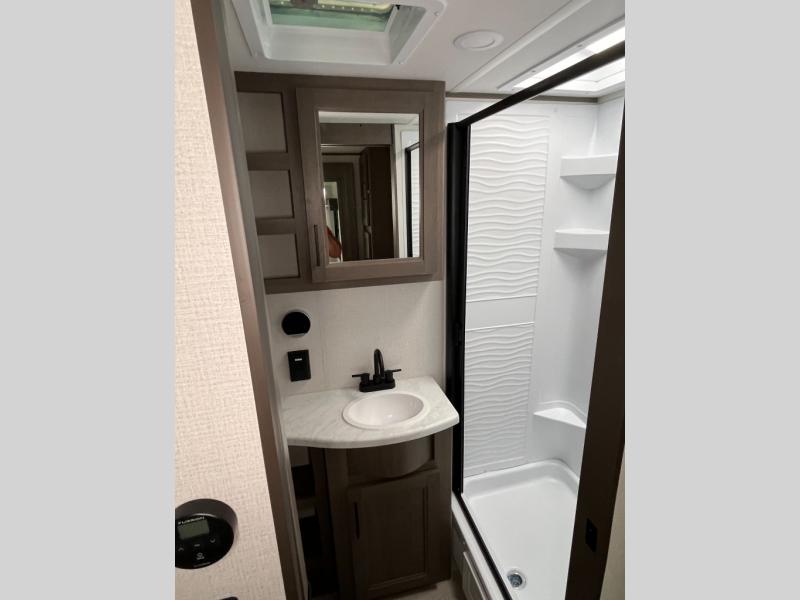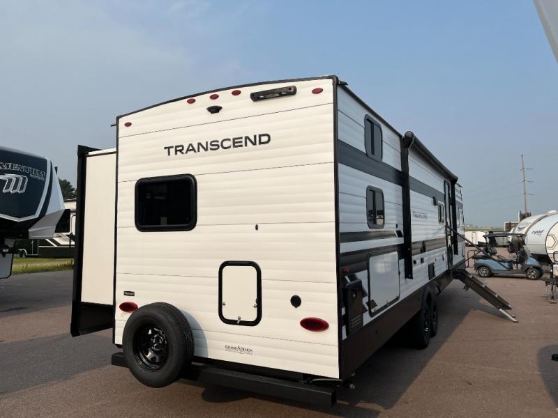 With any Transcend travel trailer by Grand Design, you will enjoy upscale appointments and convenient amenities to make each camping experience one to remember! The Quad Seal technology, residential insulated walls, plus heated and enclosed underbelly with suspended tanks make these units solid and durable. There is a black automotive glass door outside, along with a Safe-T-Rail assist on the main entry door, backup camera prep, and a universal docking station. JBL interior and exterior speakers plus a JBL head unit will let you listen to your favorite tunes as you visit under the power awning with LED strip lights. Inside, you'll enjoy multiple outlets to keep your gadgets charged, thermoformed and seamless countertops, and a 6' 6" interior height so you won't feel closed in. The Solar Prep Package will allow you to enjoy off-grid capabilities with a 200W solar panel, which is wired for up to 600W, a 30 AMP Bluetooth solar controller, a 2000W inverter prep, and more!
