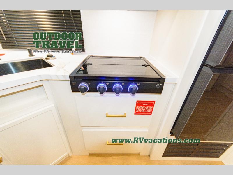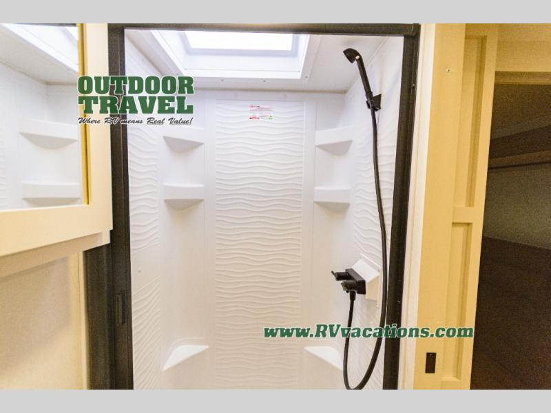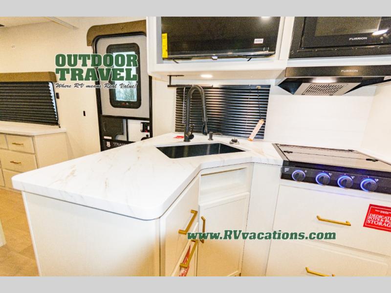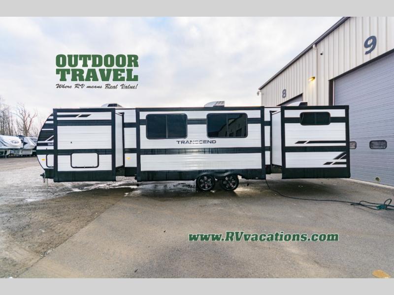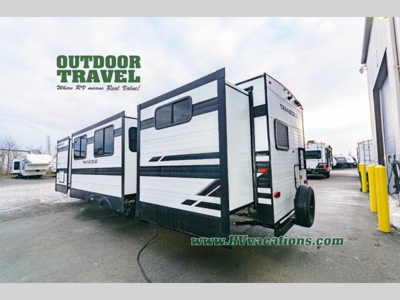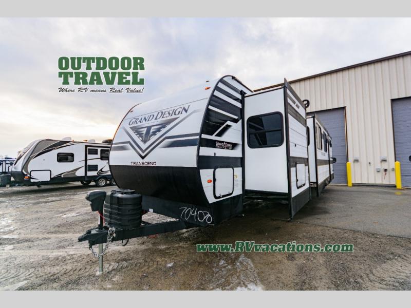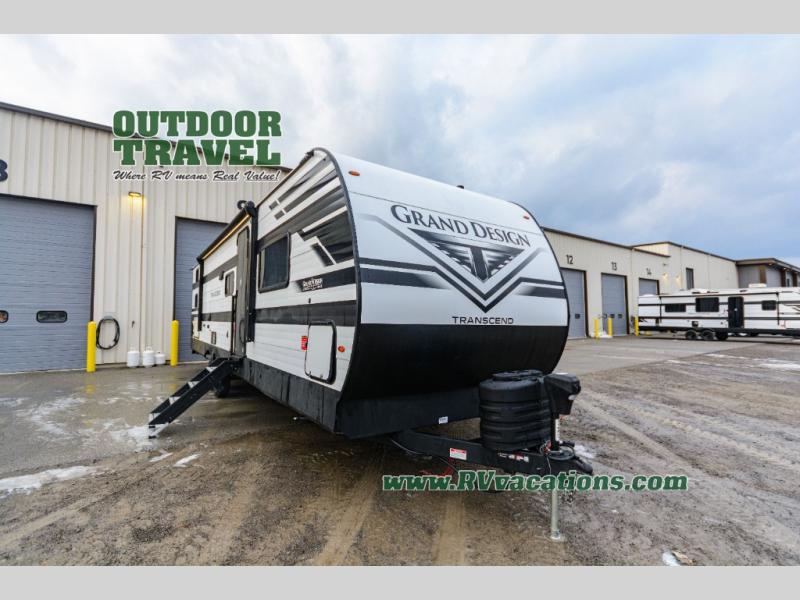 With any Transcend travel trailer by Grand Design, you will enjoy upscale appointments and convenient amenities to make each camping experience one to remember! The Quad Seal technology, residential insulated walls, plus heated and enclosed underbelly with suspended tanks make these units solid and durable. There is a black automotive glass door outside, along with a Safe-T-Rail assist on the main entry door, backup camera prep, and a universal docking station. JBL interior and exterior speakers plus a JBL head unit will let you listen to your favorite tunes as you visit under the power awning with LED strip lights. Inside, you'll enjoy multiple outlets to keep your gadgets charged, thermoformed and seamless countertops, and a 6' 6" interior height so you won't feel closed in. The Solar Prep Package will allow you to enjoy off-grid capabilities with a 200W solar panel, which is wired for up to 600W, a 30 AMP Bluetooth solar controller, a 2000W inverter prep, and more!