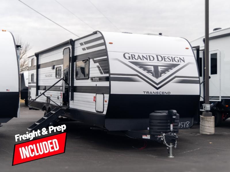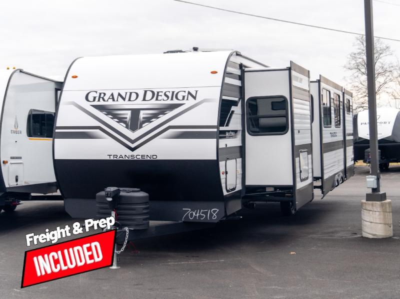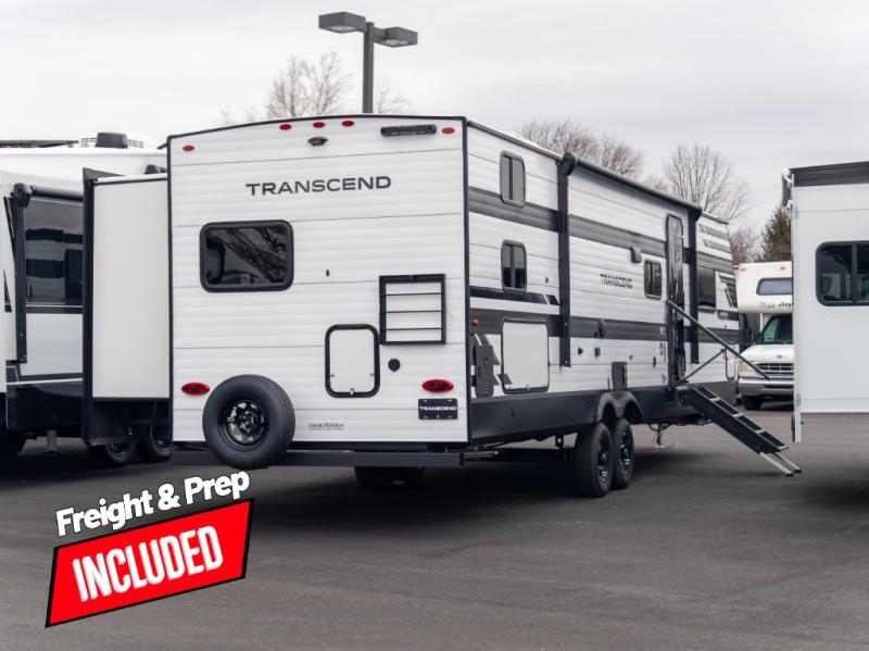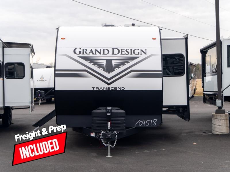 With any Transcend travel trailer by Grand Design, you will enjoy upscale appointments and convenient amenities to make each camping experience one to remember! The Quad Seal technology, residential insulated walls, plus heated and enclosed underbelly with suspended tanks make these units solid and durable. There is a black automotive glass door outside, along with a Safe-T-Rail assist on the main entry door, backup camera prep, and a universal docking station. JBL interior and exterior speakers plus a JBL head unit will let you listen to your favorite tunes as you visit under the power awning with LED strip lights. Inside, you'll enjoy multiple outlets to keep your gadgets charged, thermoformed and seamless countertops, and a 6' 6" interior height so you won't feel closed in. The Solar Prep Package will allow you to enjoy off-grid capabilities with a 200W solar panel, which is wired for up to 600W, a 30 AMP Bluetooth solar controller, a 2000W inverter prep, and more!