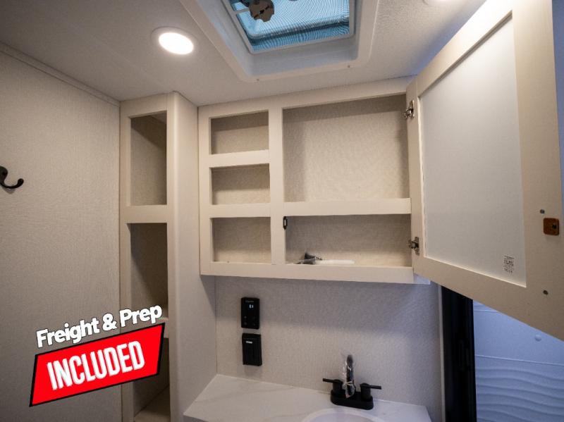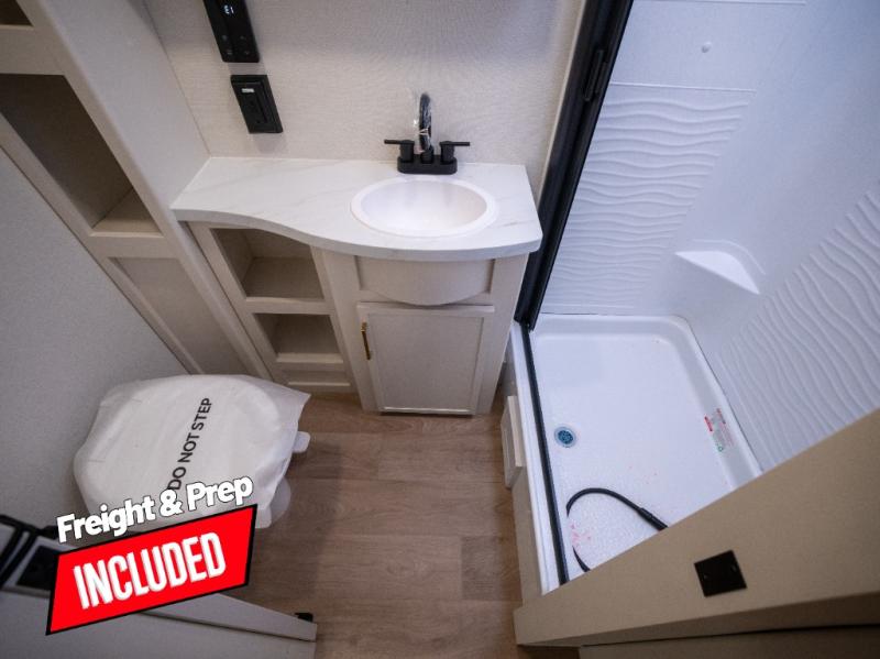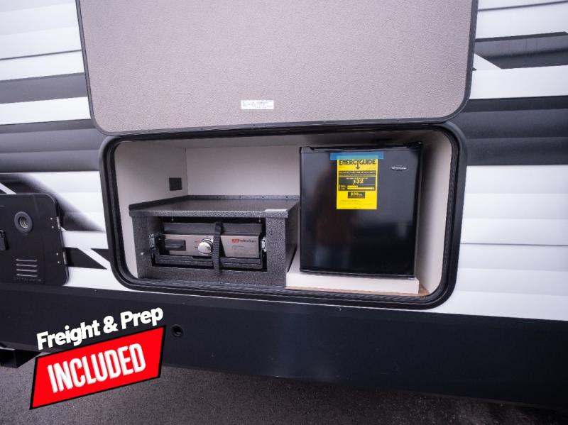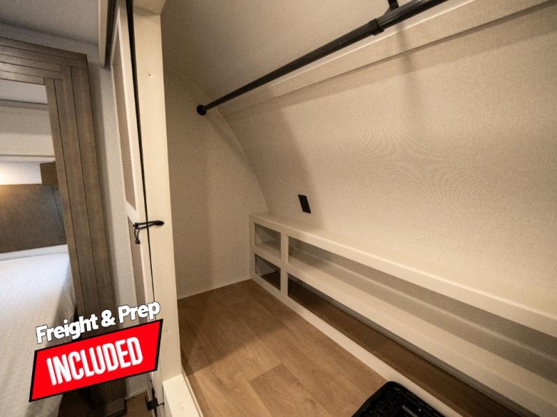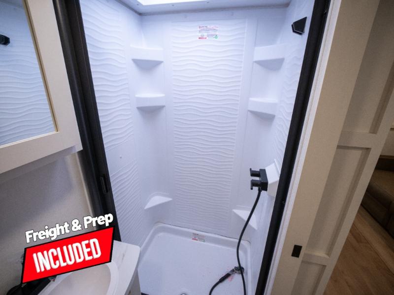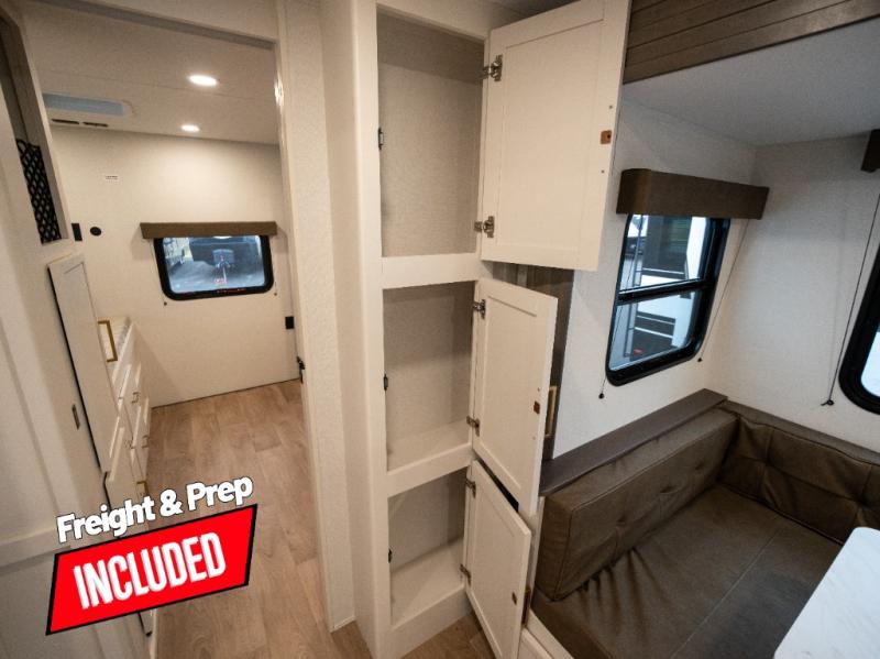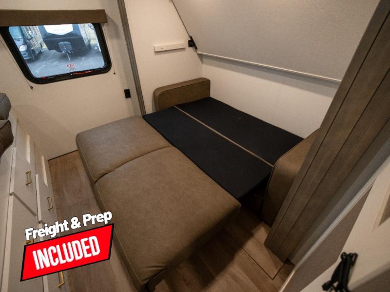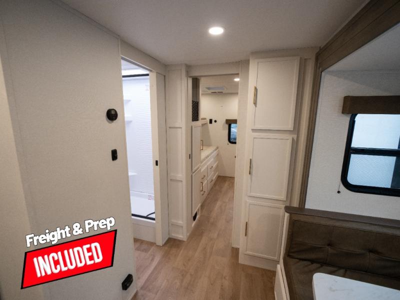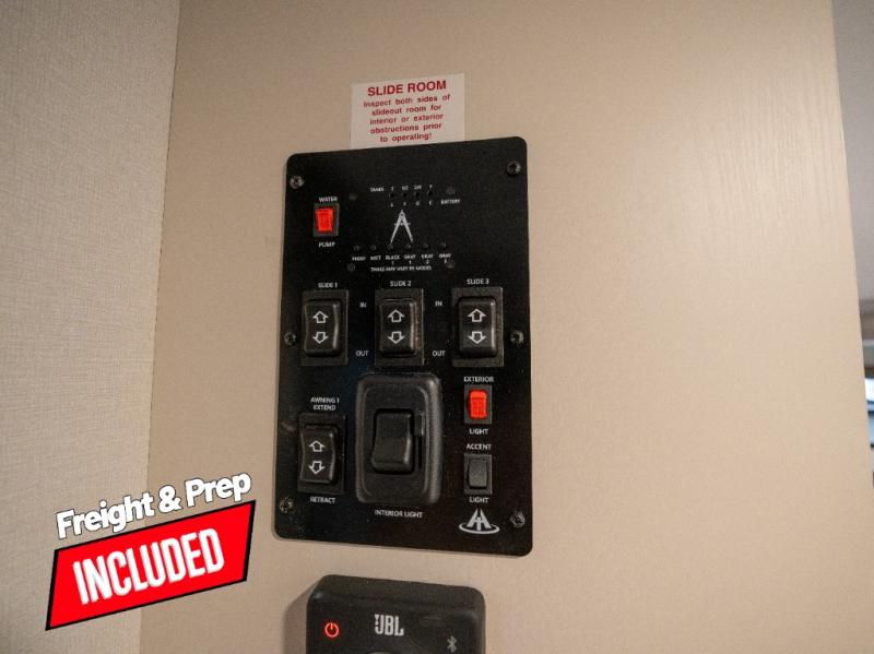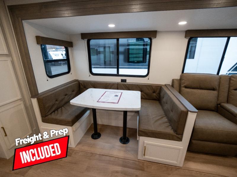 If you're looking for a travel trailer that can house your whole gang, this unit is the one! The rear private bunkhouse can sleep up to five since there is a sleeper sofa and three bunks, plus there are storage drawers for your guests' things. A front private bedroom will be perfect for the owners with a queen bed slide out and spacious front closet with washer and dryer prep! Whether you cook outside on the exterior griddle or inside on the three burner range, you'll be able to make your best meals. There is also a 12V French door refrigerator with a glass front and bottom freezer and a convection microwave/combo air fryer to enjoy some crispy fries! A U-shaped dinette and 60" sleeper sofa within the living room slide provides even more seating and sleeping space, or you can choose the optional theater seating!