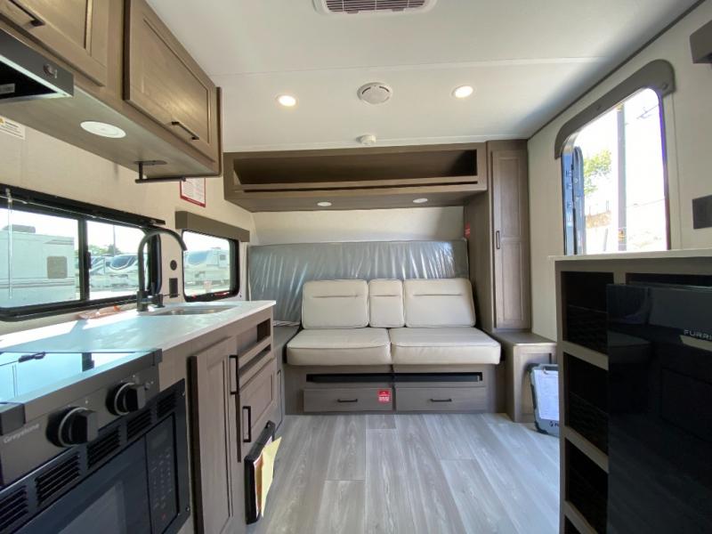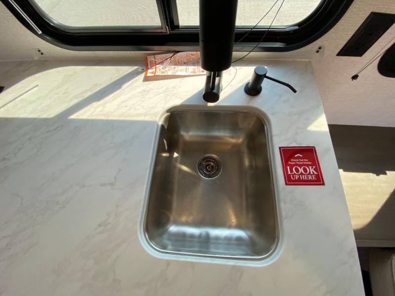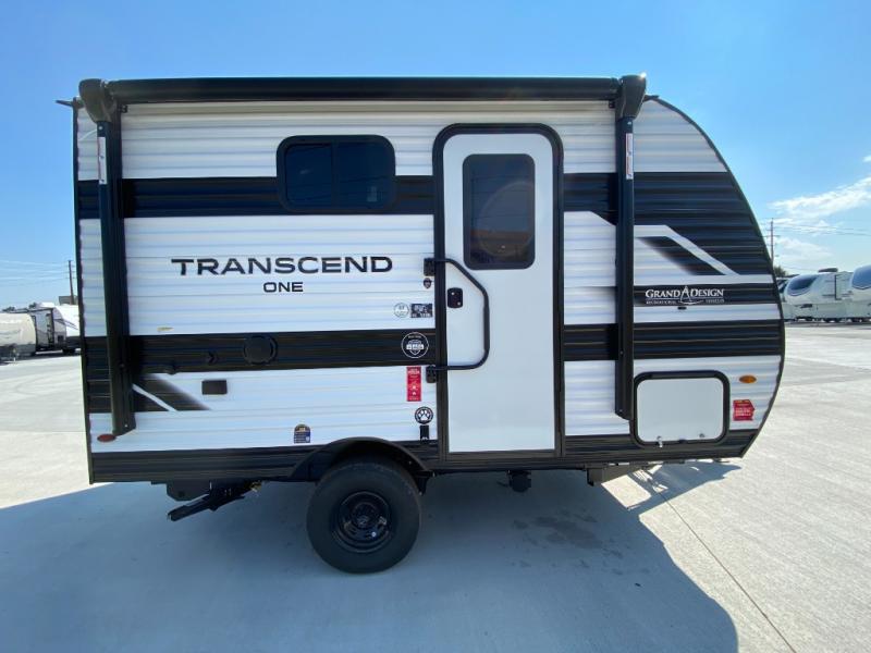 With any Transcend One travel trailer by Grand Design, you will enjoy lightweight towing thanks to their single-axle. There are many interior comforts to make camping easier than ever, such as recessed lighting, residential countertops, and a 6' 6" interior height. Each model is constructed with a heated and enclosed underbelly with suspended tanks, a moisture barrier floor enclosure, and Thermofoil over the roof and front cap for added protection. And a JBL sound system will let you listen to tunes as you visit under the power awning with a Fusion light!