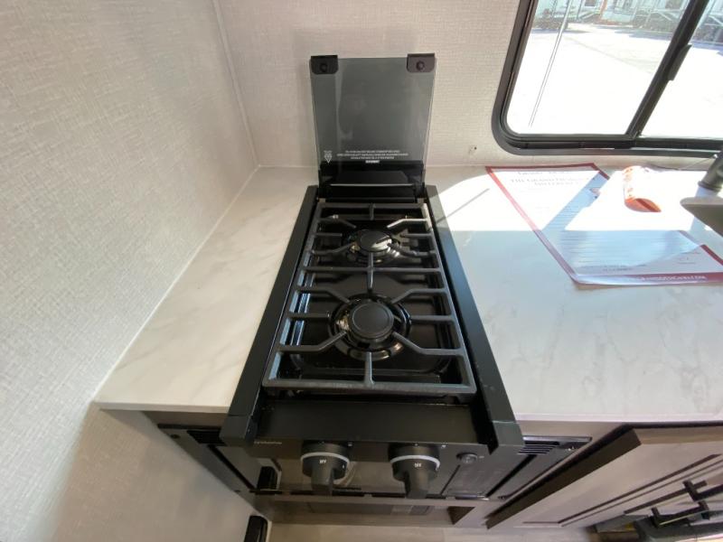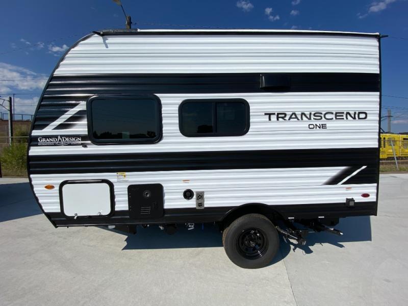 With any Transcend One travel trailer by Grand Design, you will enjoy lightweight towing thanks to their single-axle. There are many interior comforts to make camping easier than ever, such as recessed lighting, residential countertops, and a 6' 6" interior height. Each model is constructed with a heated and enclosed underbelly with suspended tanks, a moisture barrier floor enclosure, and Thermofoil over the roof and front cap for added protection. And a JBL sound system will let you listen to tunes as you visit under the power awning with a Fusion light!