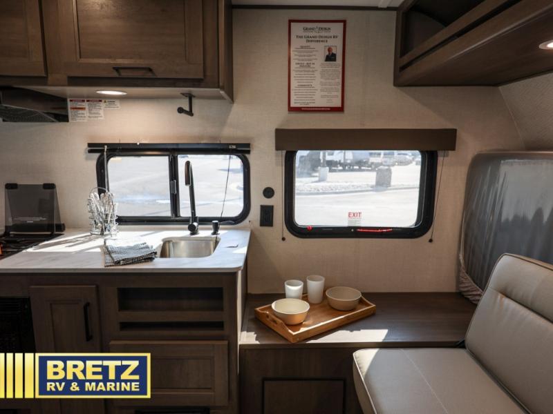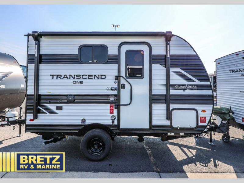 With any Transcend One travel trailer by Grand Design, you will enjoy lightweight towing thanks to their single-axle. There are many interior comforts to make camping easier than ever, such as recessed lighting, residential countertops, and a 6' 6" interior height. Each model is constructed with a heated and enclosed underbelly with suspended tanks, a moisture barrier floor enclosure, and Thermofoil over the roof and front cap for added protection. And a JBL sound system will let you listen to tunes as you visit under the power awning with a Fusion light!