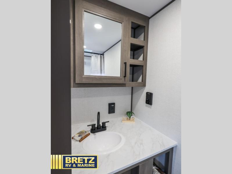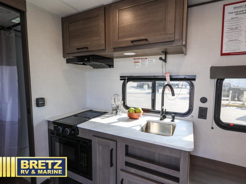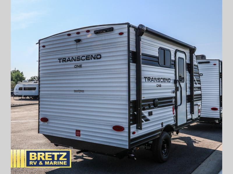 With any Transcend One travel trailer by Grand Design, you will enjoy lightweight towing thanks to their single-axle. There are many interior comforts to make camping easier than ever, such as recessed lighting, residential countertops, and a 6' 6" interior height. Each model is constructed with a heated and enclosed underbelly with suspended tanks, a moisture barrier floor enclosure, and Thermofoil over the roof and front cap for added protection. And a JBL sound system will let you listen to tunes as you visit under the power awning with a Fusion light!