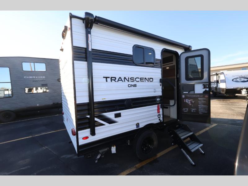 With any Transcend One travel trailer by Grand Design, you will enjoy lightweight towing thanks to their single-axle. There are many interior comforts to make camping easier than ever, such as recessed lighting, residential countertops, and a 6' 6" interior height. Each model is constructed with a heated and enclosed underbelly with suspended tanks, a moisture barrier floor enclosure, and Thermofoil over the roof and front cap for added protection. And a JBL sound system will let you listen to tunes as you visit under the power awning with a Fusion light!