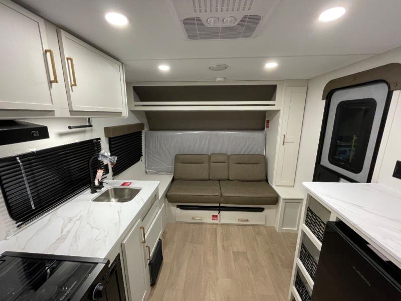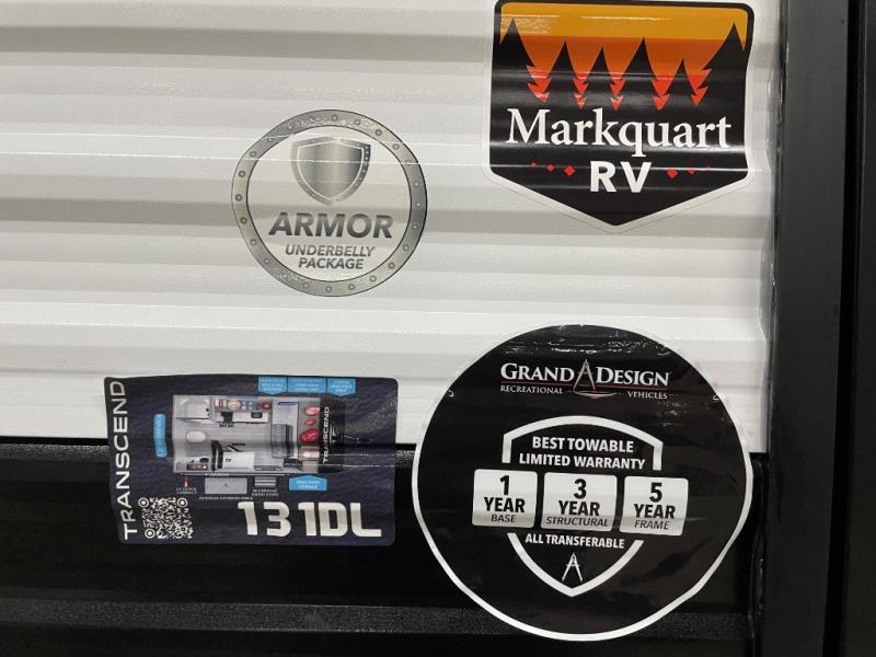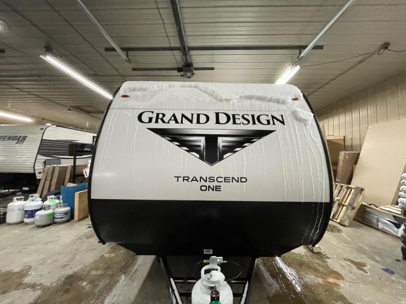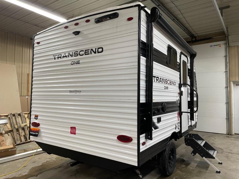 With any Transcend One travel trailer by Grand Design, you will enjoy lightweight towing thanks to their single-axle. There are many interior comforts to make camping easier than ever, such as recessed lighting, residential countertops, and a 6' 6" interior height. Each model is constructed with a heated and enclosed underbelly with suspended tanks, a moisture barrier floor enclosure, and Thermofoil over the roof and front cap for added protection. And a JBL sound system will let you listen to tunes as you visit under the power awning with a Fusion light!
