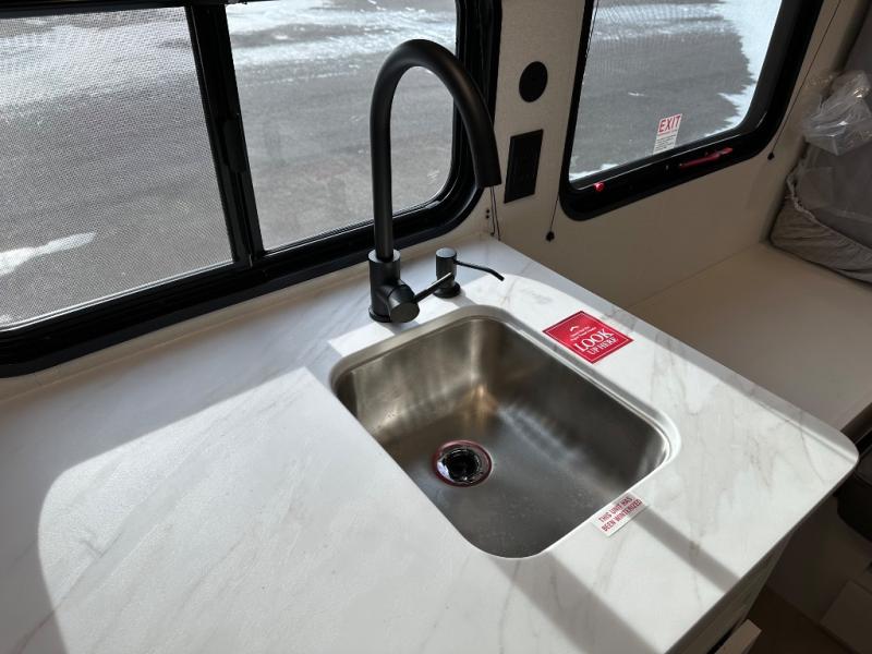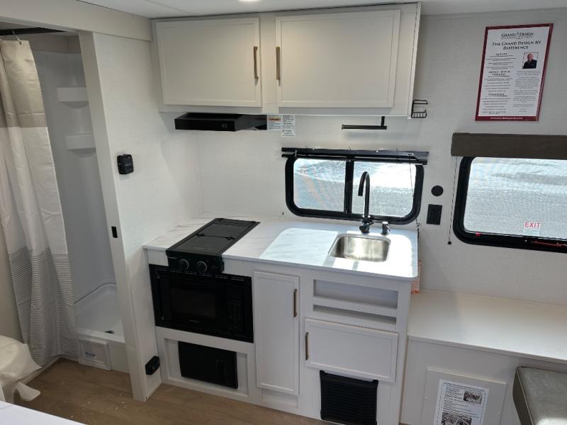 With any Transcend One travel trailer by Grand Design, you will enjoy lightweight towing thanks to their single-axle. There are many interior comforts to make camping easier than ever, such as recessed lighting, residential countertops, and a 6' 6" interior height. Each model is constructed with a heated and enclosed underbelly with suspended tanks, a moisture barrier floor enclosure, and Thermofoil over the roof and front cap for added protection. And a JBL sound system will let you listen to tunes as you visit under the power awning with a Fusion light!