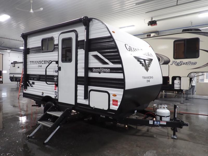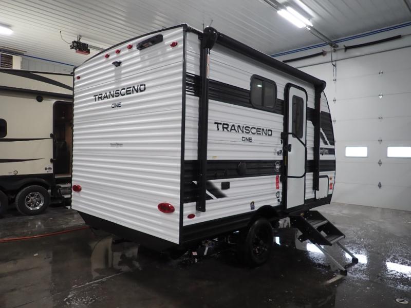With any Transcend One travel trailer by Grand Design, you will enjoy lightweight towing thanks to their single-axle. There are many interior comforts to make camping easier than ever, such as recessed lighting, residential countertops, and a 6' 6" interior height. Each model is constructed with a heated and enclosed underbelly with suspended tanks, a moisture barrier floor enclosure, and Thermofoil over the roof and front cap for added protection. And a JBL sound system will let you listen to tunes as you visit under the power awning with a Fusion light!