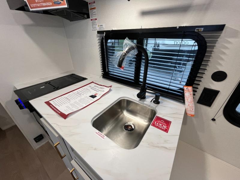 With any Transcend One travel trailer by Grand Design, you will enjoy lightweight towing thanks to their single-axle. There are many interior comforts to make camping easier than ever, such as recessed lighting, residential countertops, and a 6' 6" interior height. Each model is constructed with a heated and enclosed underbelly with suspended tanks, a moisture barrier floor enclosure, and Thermofoil over the roof and front cap for added protection. And a JBL sound system will let you listen to tunes as you visit under the power awning with a Fusion light!